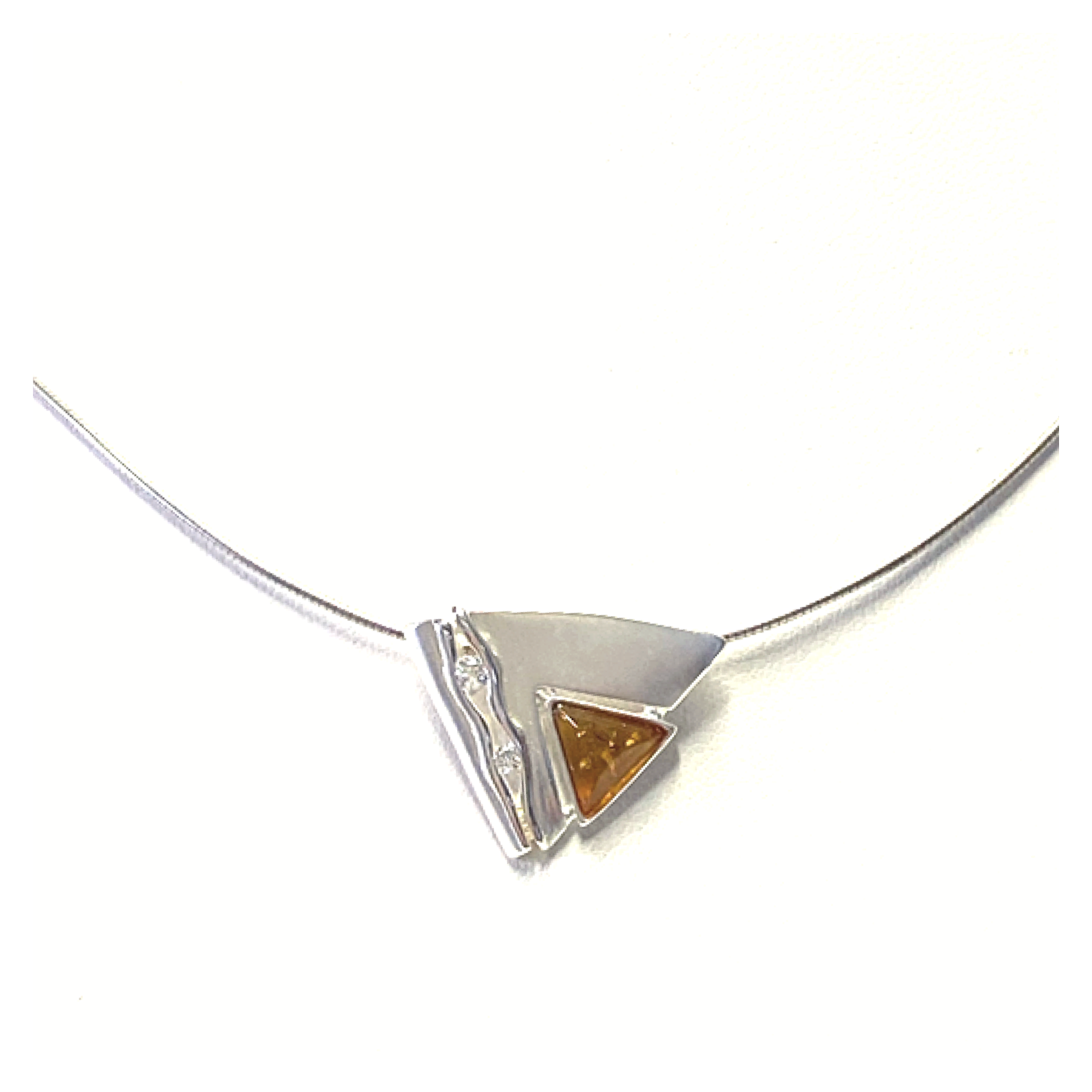 Anhänger 925 Silber Bernstein Cabochon dreieck Zirkonia matte Oberfläche Kettengleiter