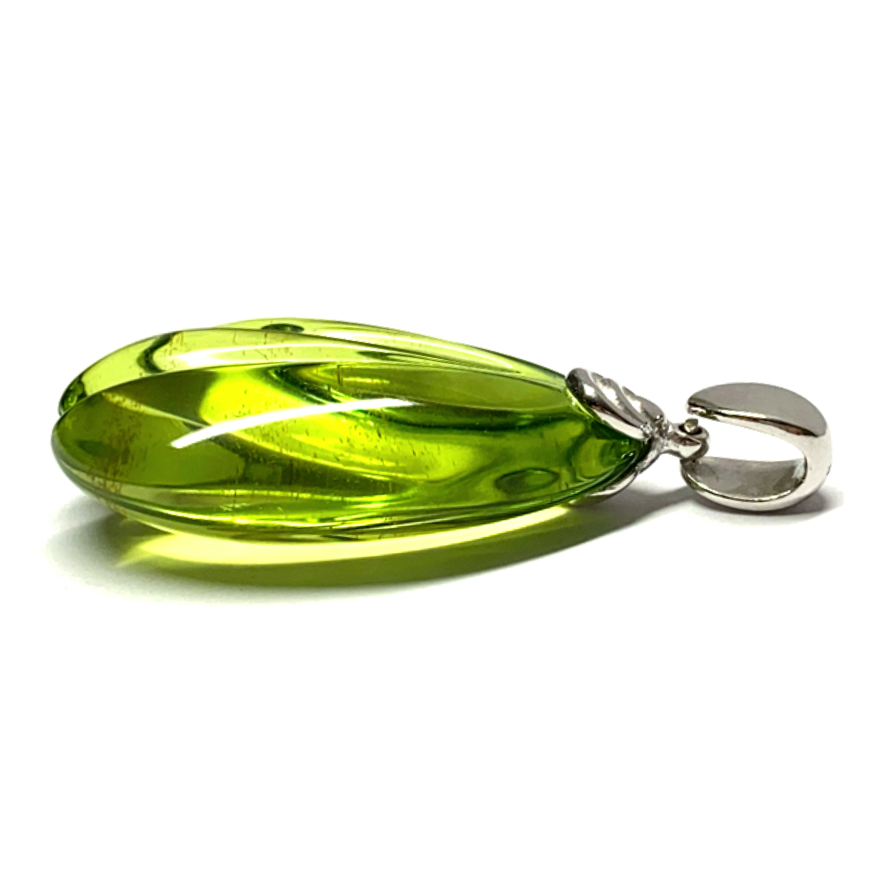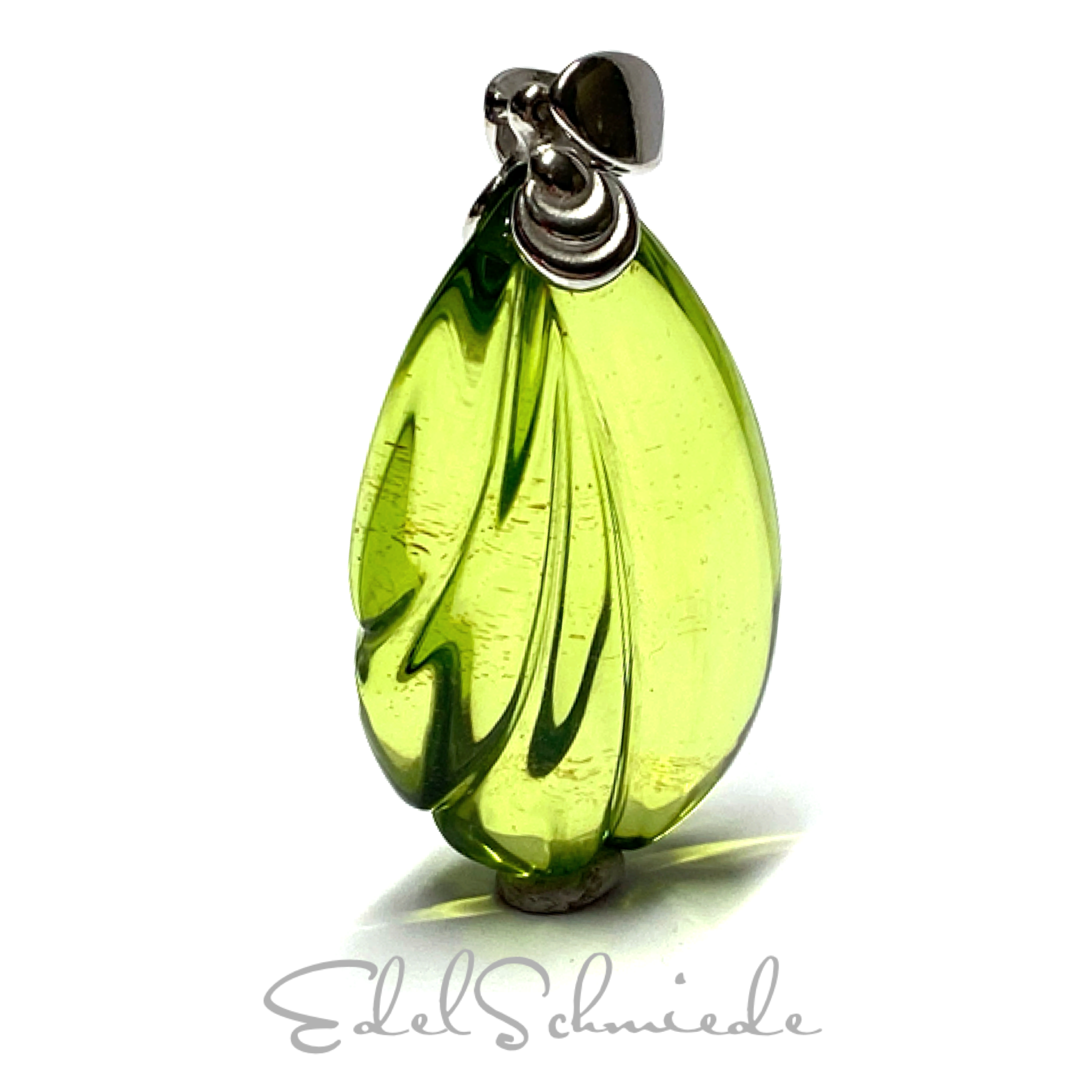 Dieser edle Kettenanhänger ist aus 925/- Sterling Silber gefertigt und wurde abschließend, als Anlaufschutz, rhodiniert. Der Bernstein hat den Schliff eines Blattes und ist von beiden Seiten bearbeitet. Über die beweglich montierte Anhängerschlaufe können Sie eine Kette Ihrer Wahl einfädeln. Die hier abgebildete Kette ist nicht im Lieferumfang enthalten.