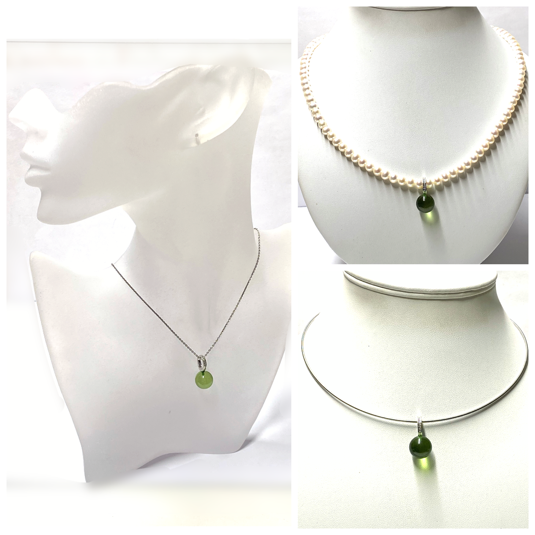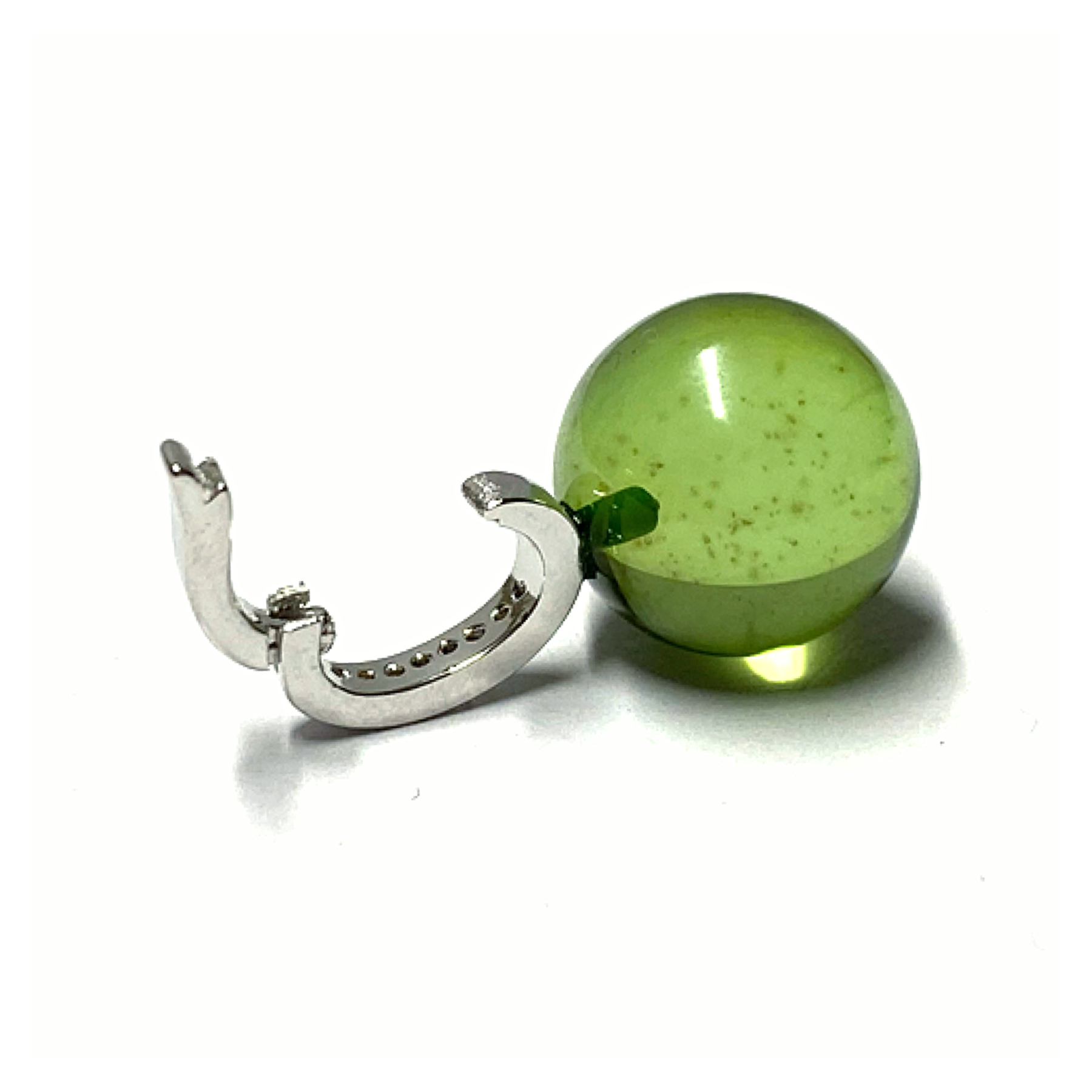 Anhänger 925 Silber rhodiniert Zirkonia + karibischer Bernstein flaschengrün Kugel 12mm geschliffen Clipanhänger Kettenanhänger