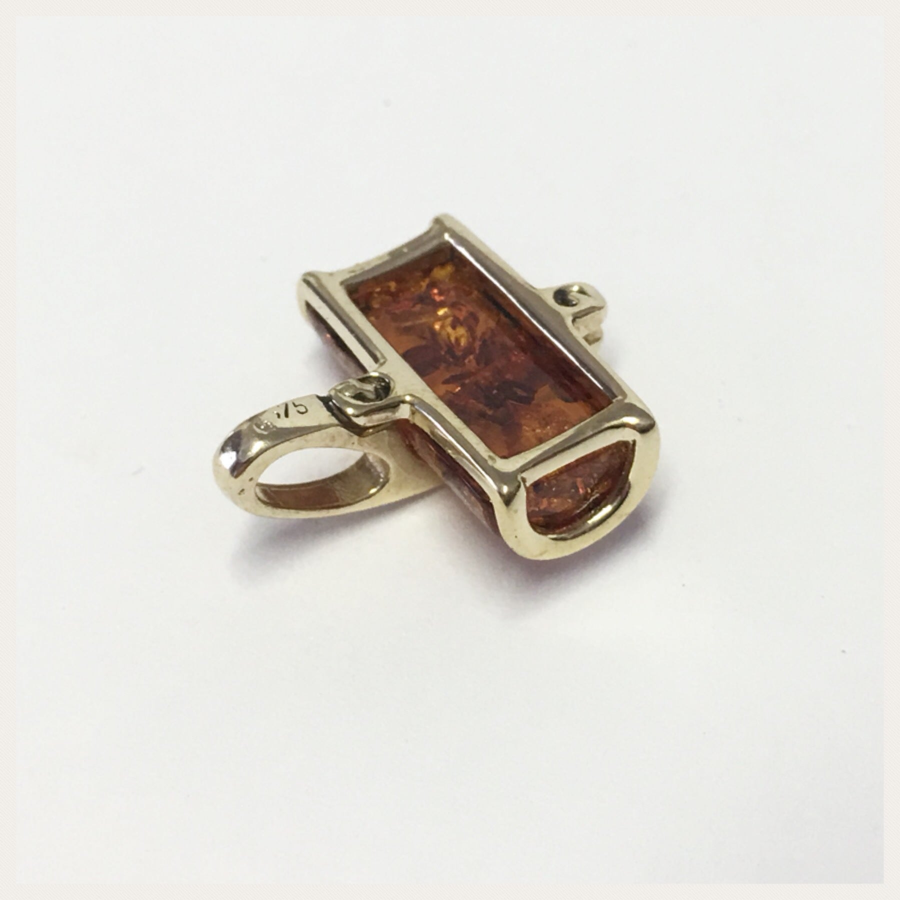 Dieser moderne Kettenanhänger ist aus 375/- Gelbgold gefertigt und hat einen tollen Bernstein in einer modernen Form eingesetzt.