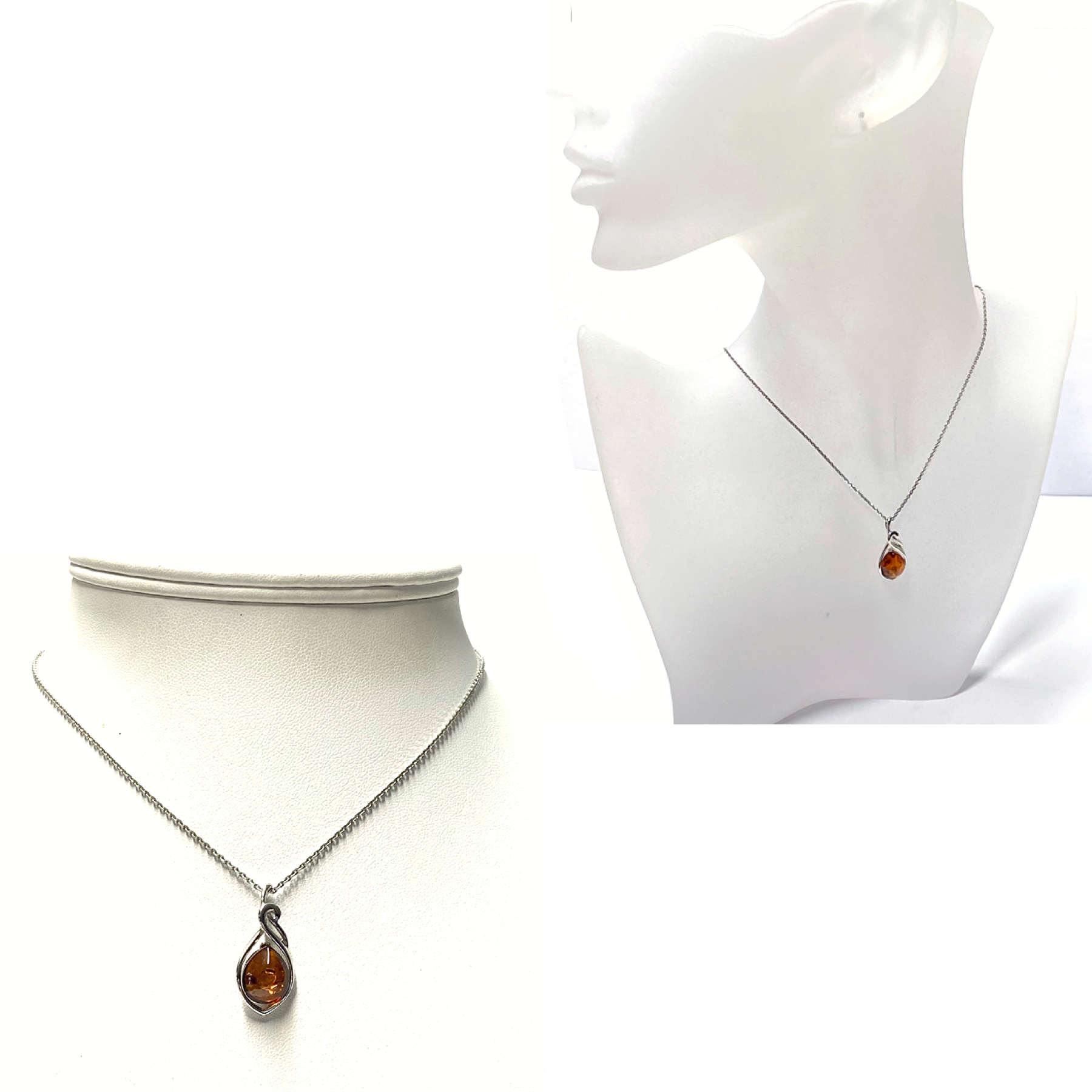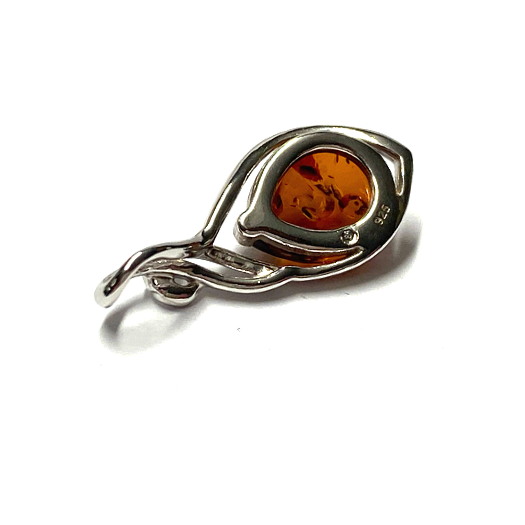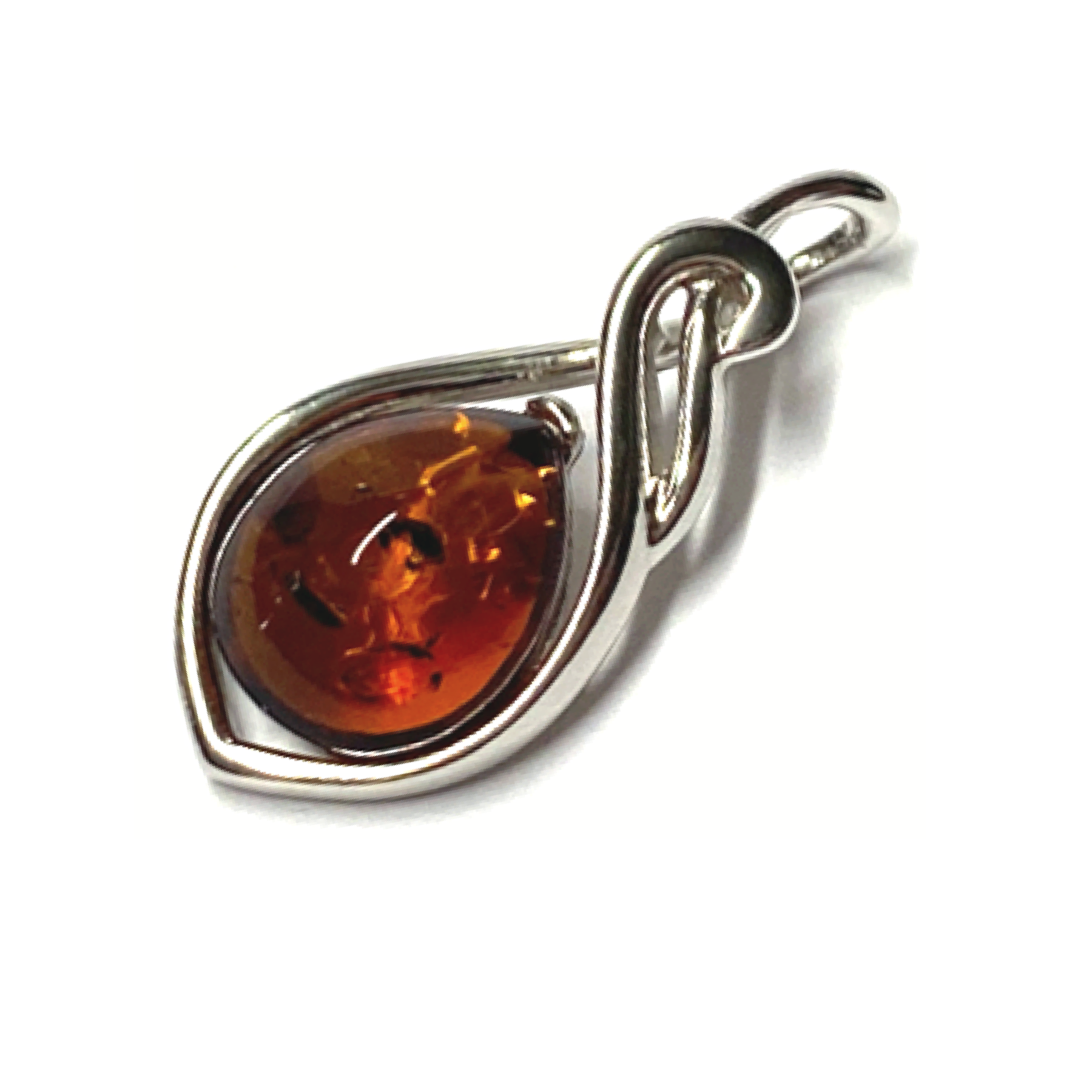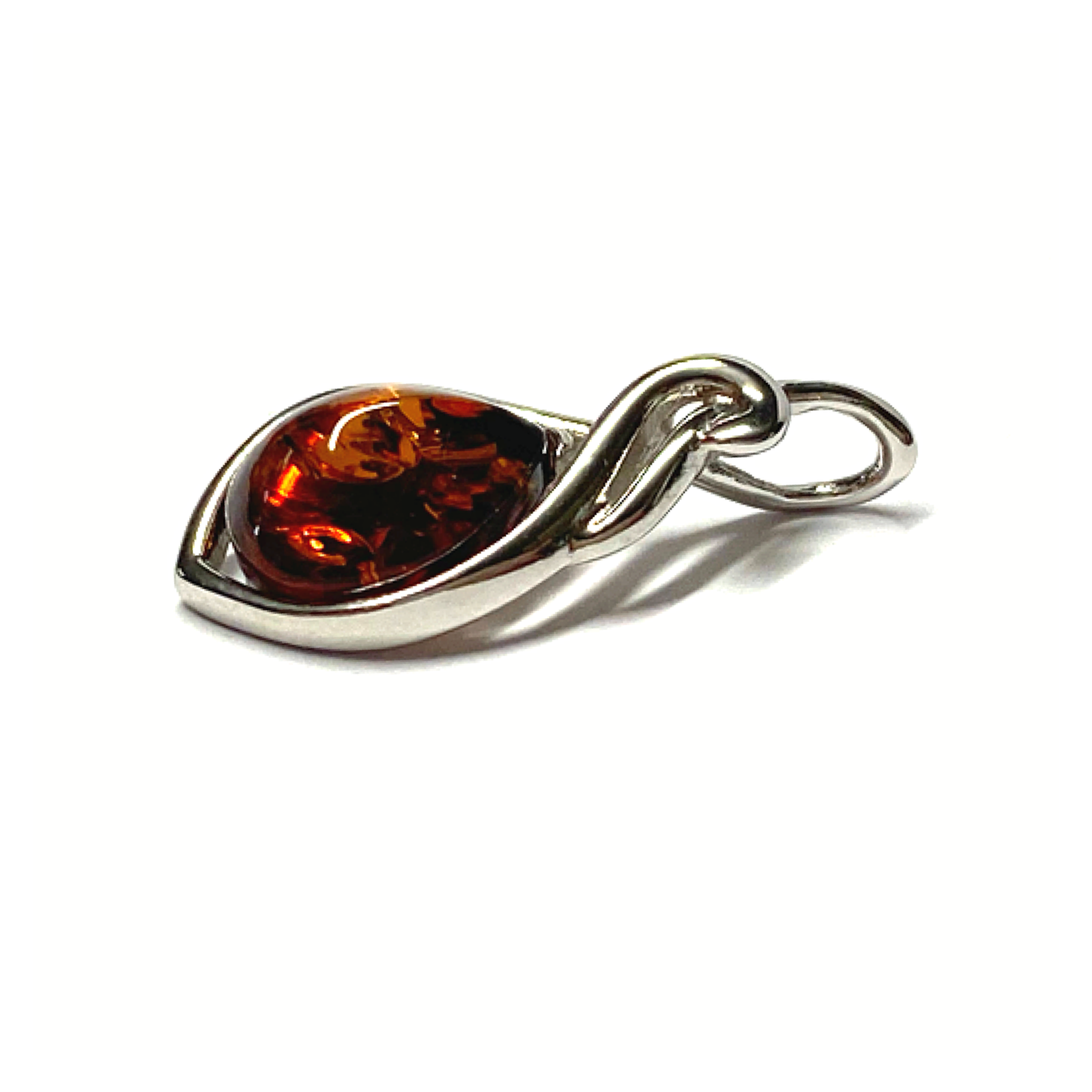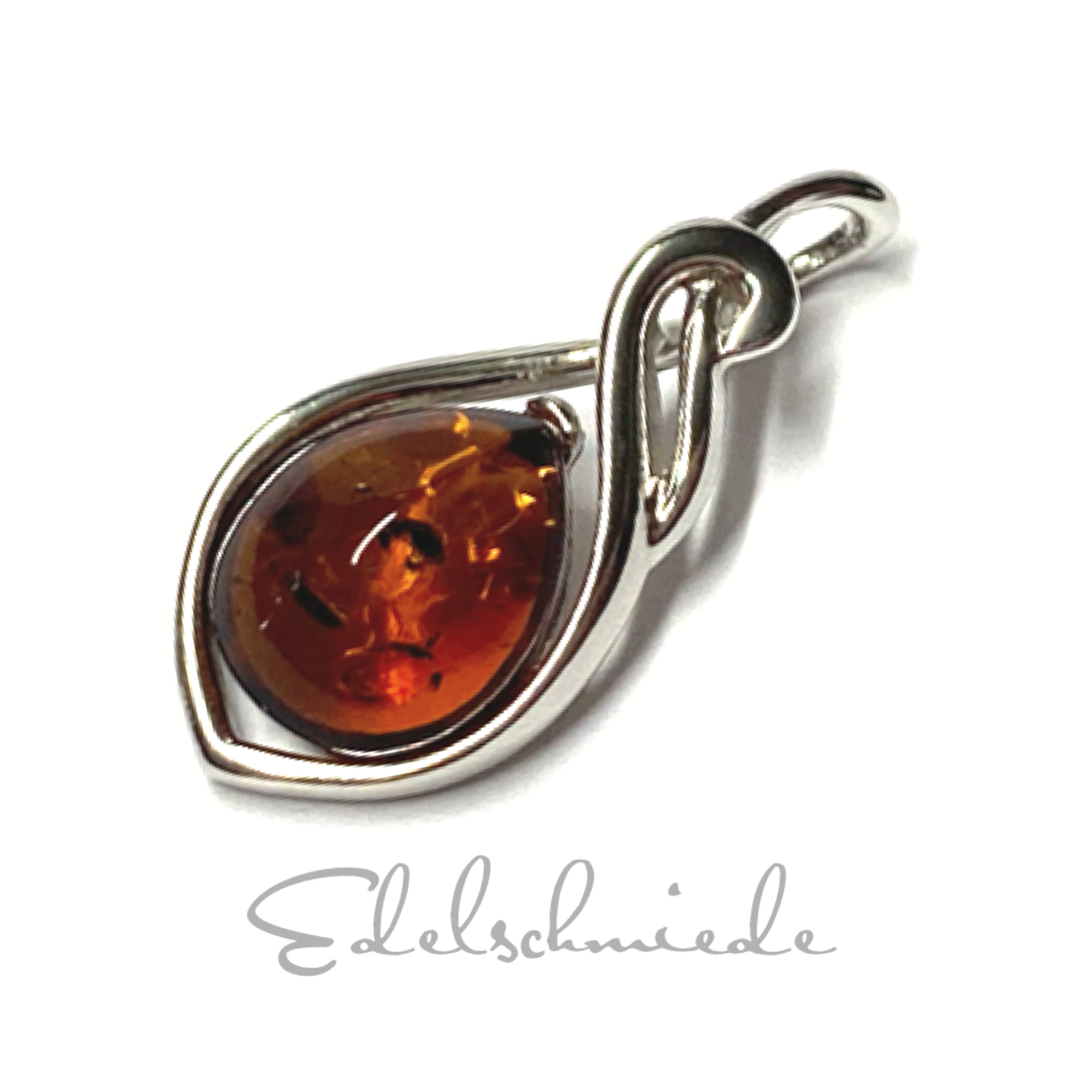Bernstein Anhänger 925 Silber rhodiniert klassische Form braun inklusive Einschlüsse Kettenanhänger