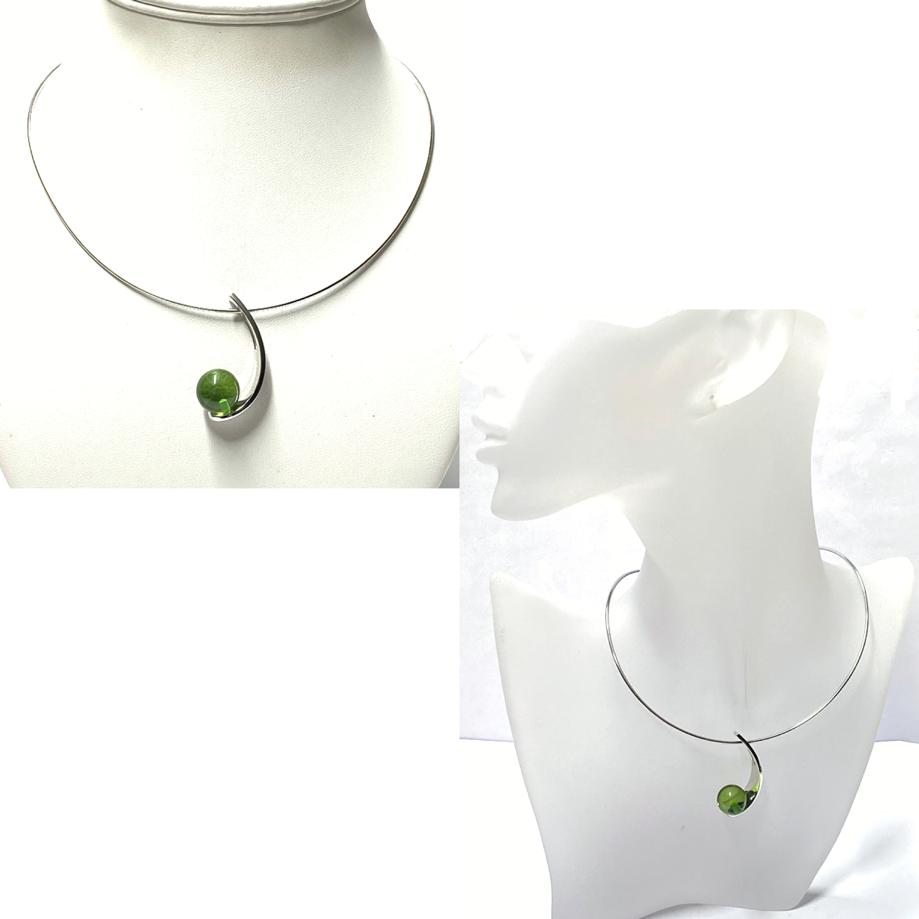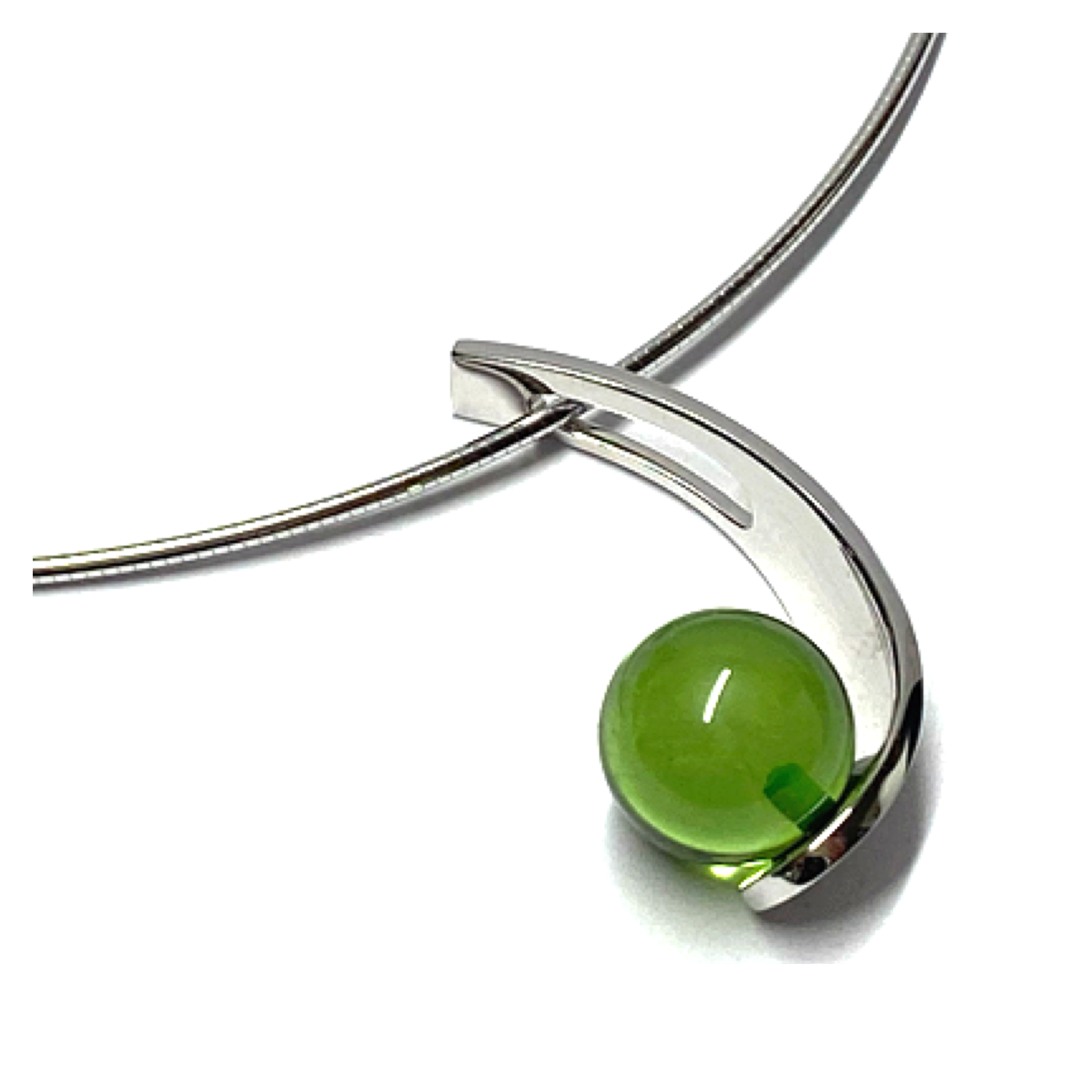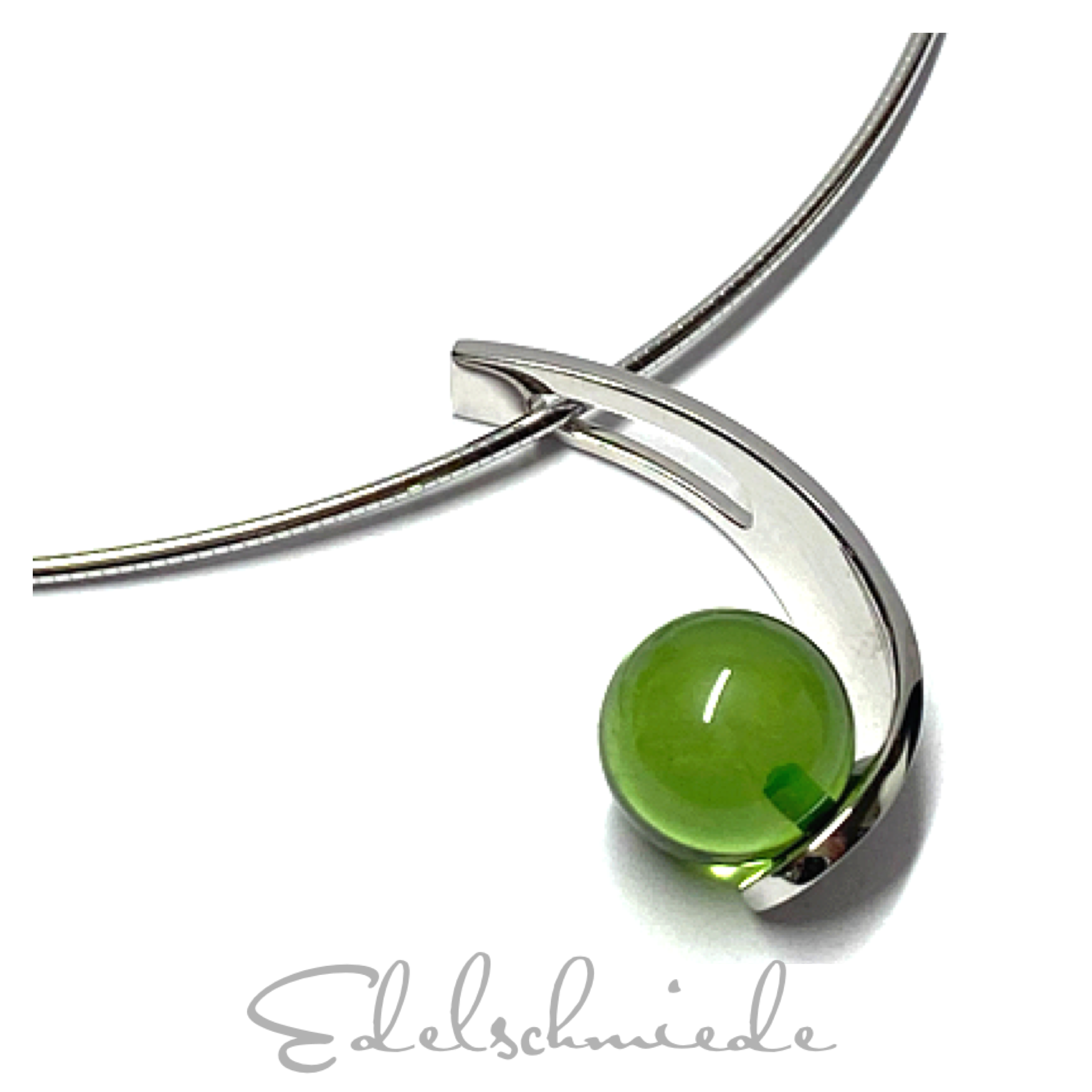 Bernstein grün Anhänger Kugel 13mm (karibischer Bernstein) 925 Silber rhodiniert inklusive Halsreif 45 cm