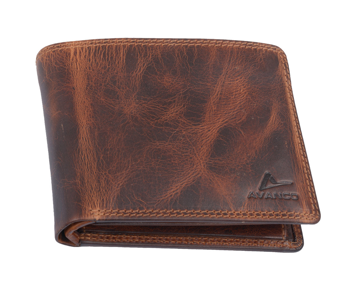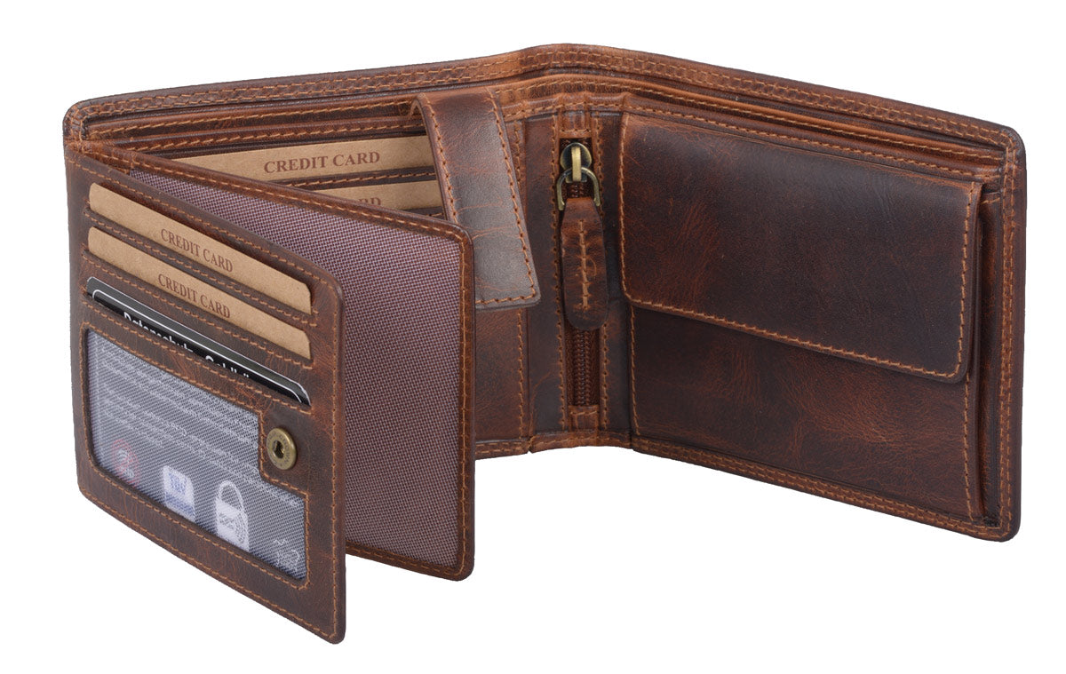 Braune Leder Herrenbörse im Querformat – kompakte Scheintasche mit RFID-Schutz