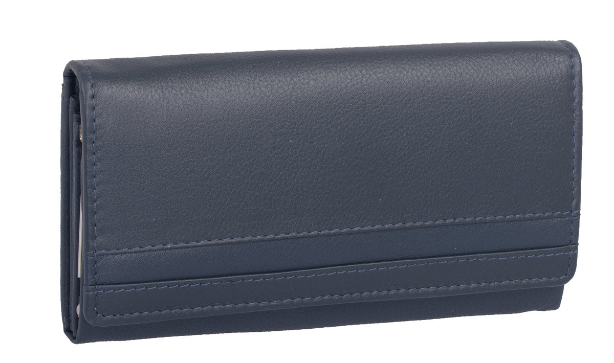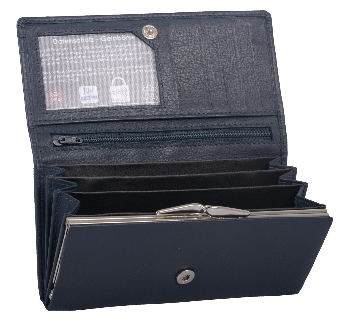 Damen Langbörse Knipsbörse Leder dunkelblau Bügelbörse