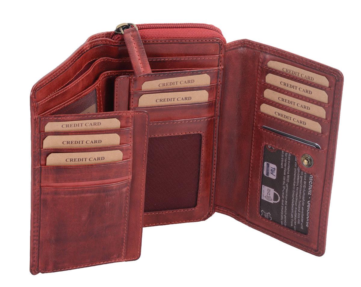 Damenbörse Langbörse rot mit vielen Kartenfächern