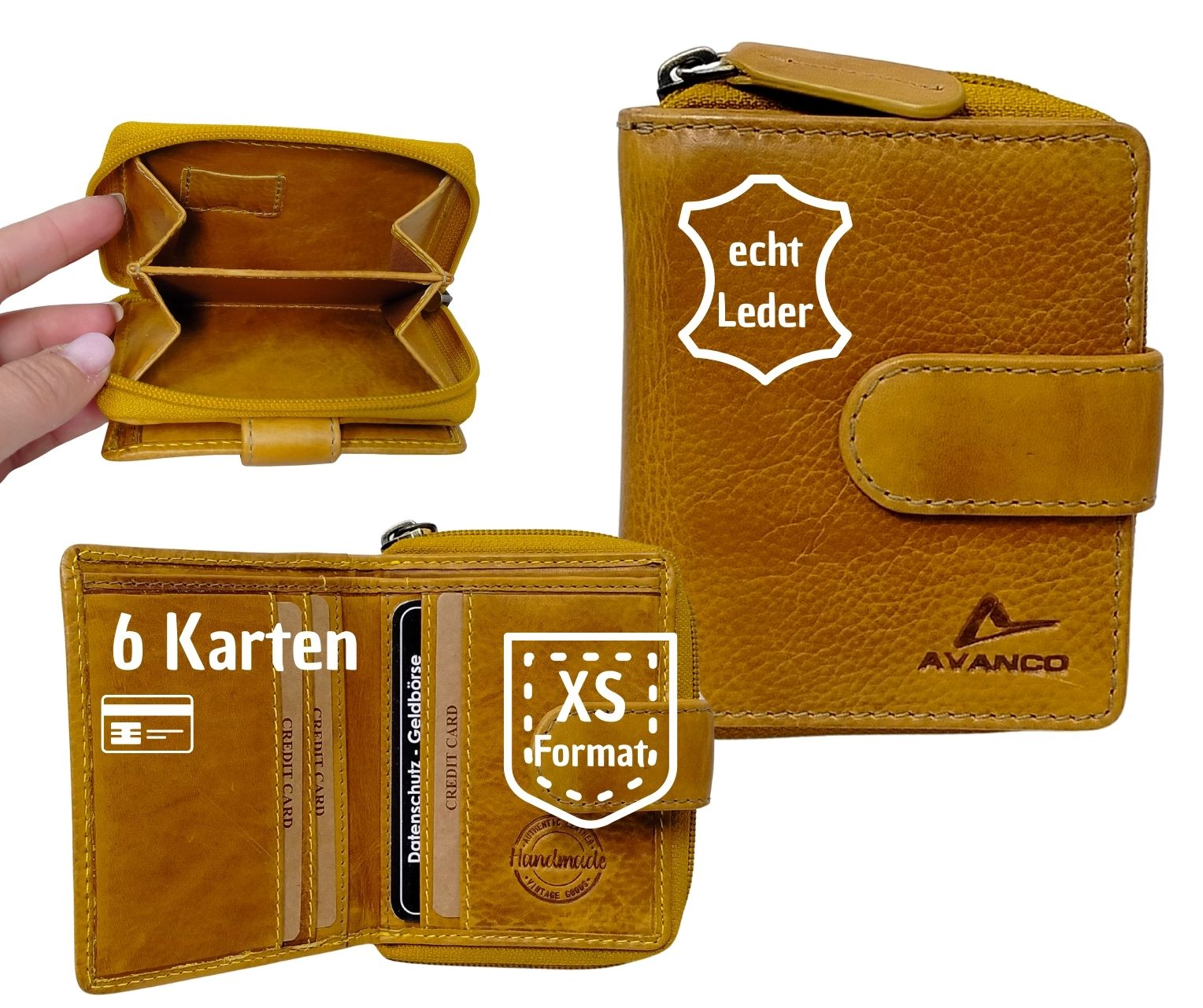 Damen Geldbörse Leder senfgelb – kleine Lederbörse mit Kartenfächern, Scheinfach & Reißverschluss-Münzfach
