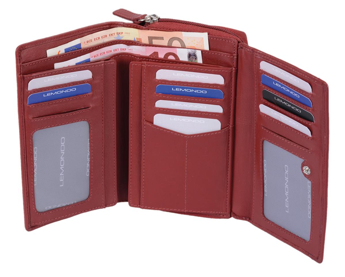 Damenlangbörse dunkelrot, weiches Leder, große Reißverschlussbörse