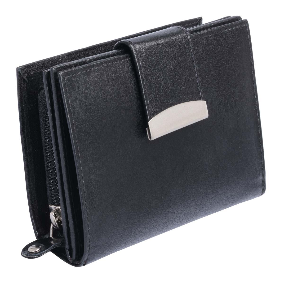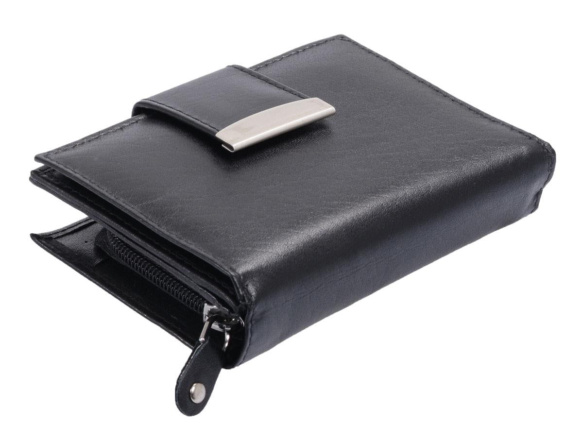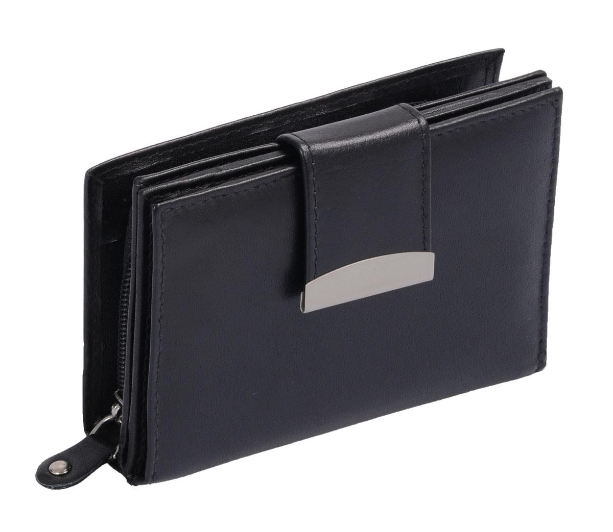 Damenreißverschlussbörse Leder, eckig mit Lasche, schwarz