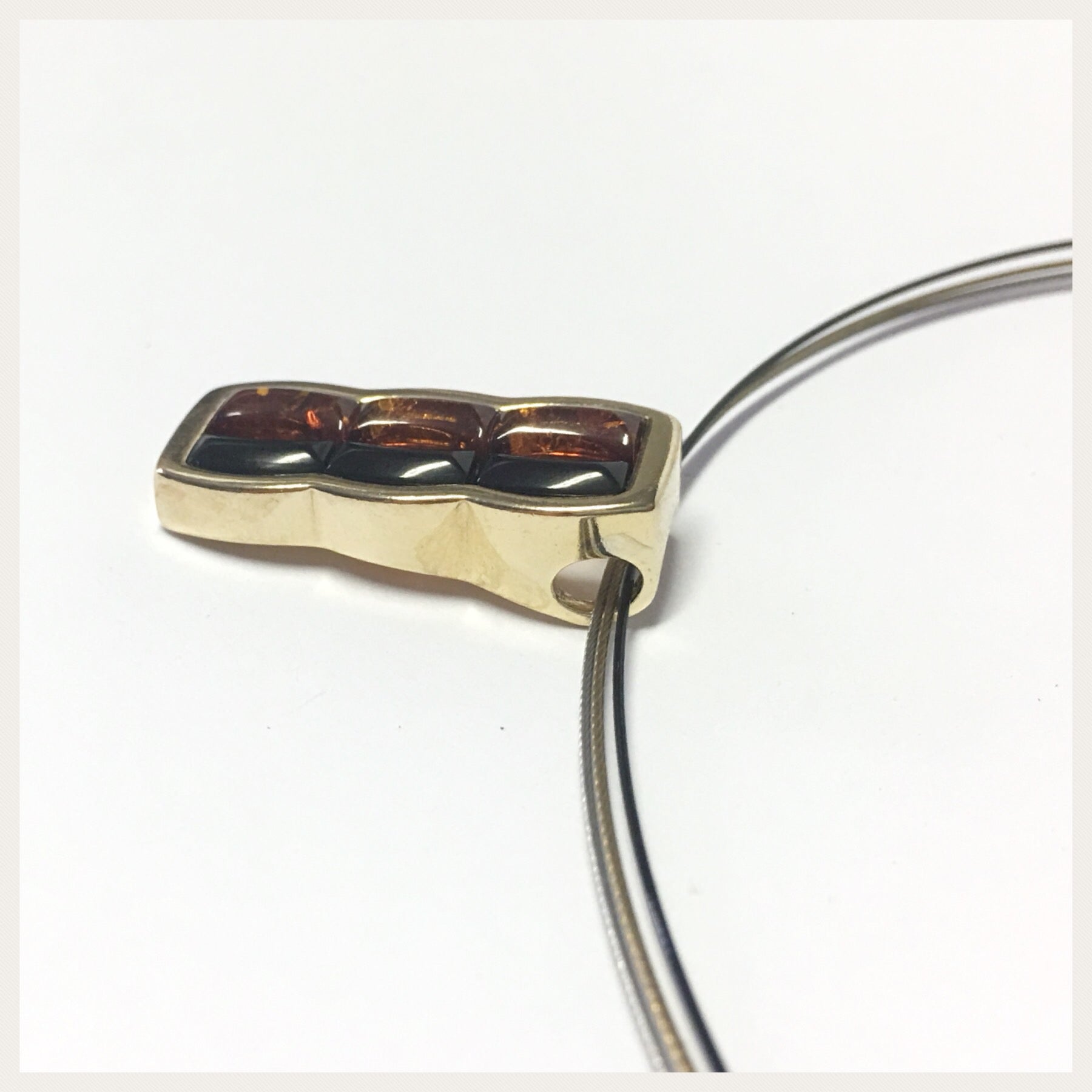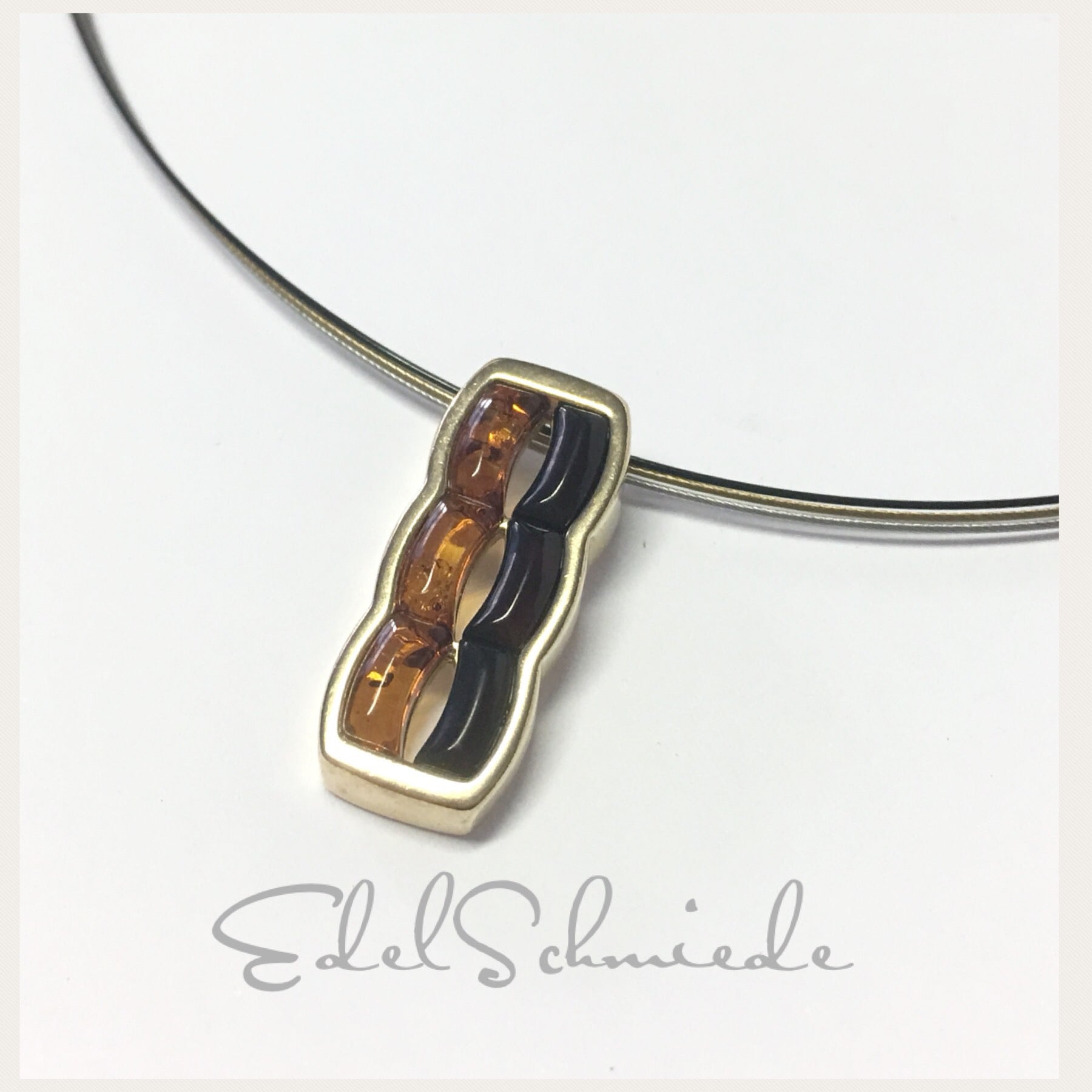 Edelschmiede925 Bernstein Anhänger 925 Silber vergoldet. inkl Halsreif 45 cm