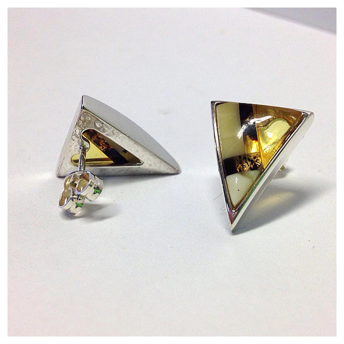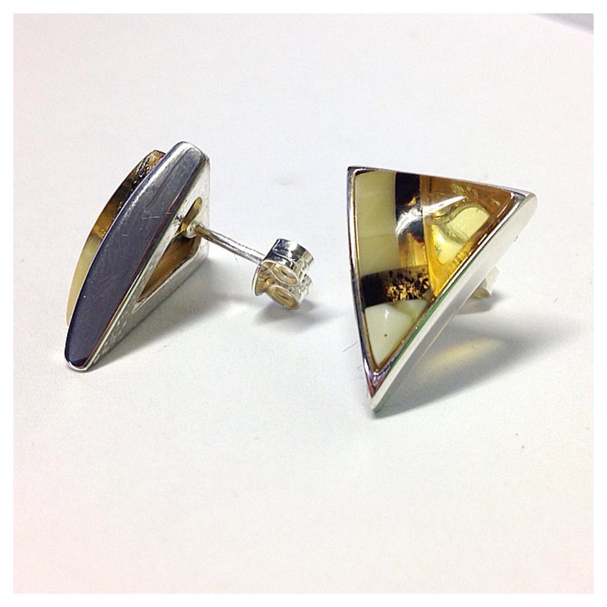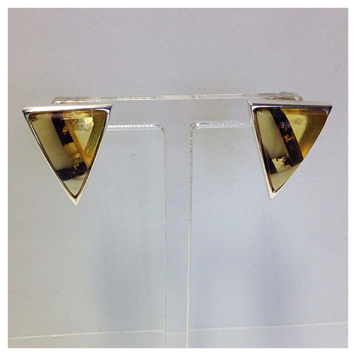 Edelschmiede925 dreieckige Ohrstecker 925 Silber m Bernsteinmosaik