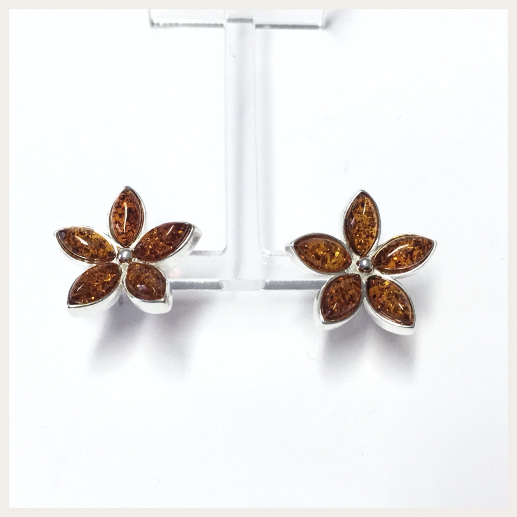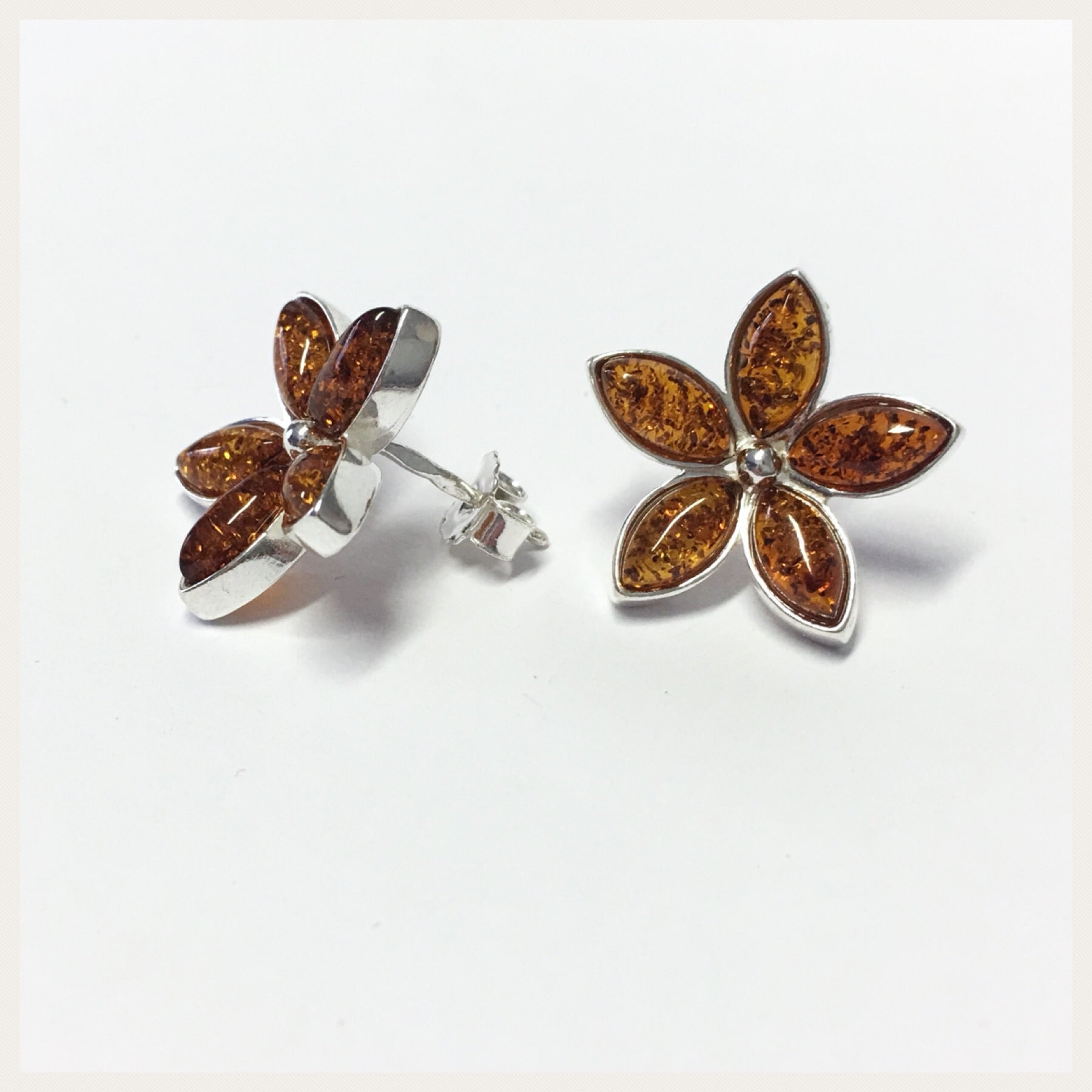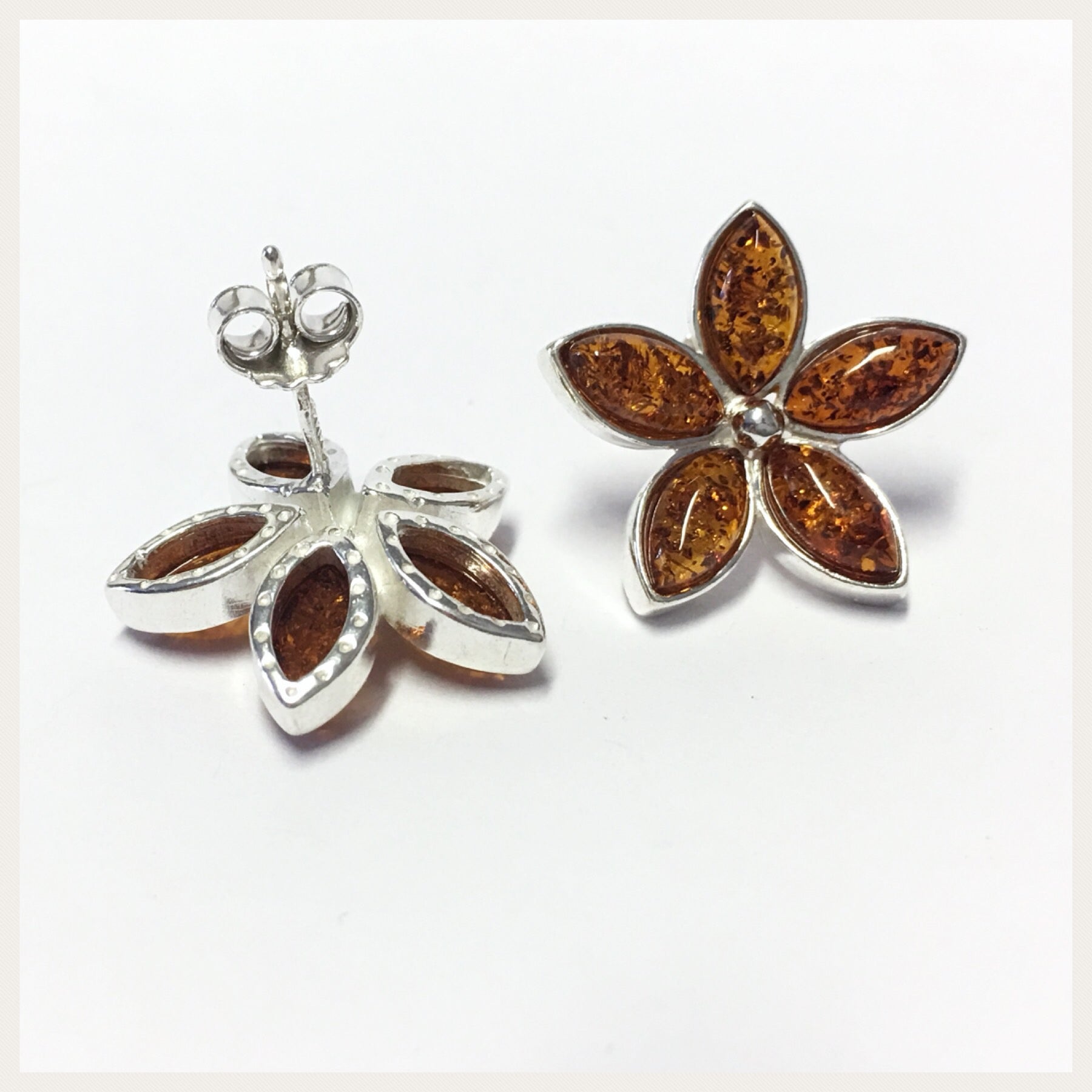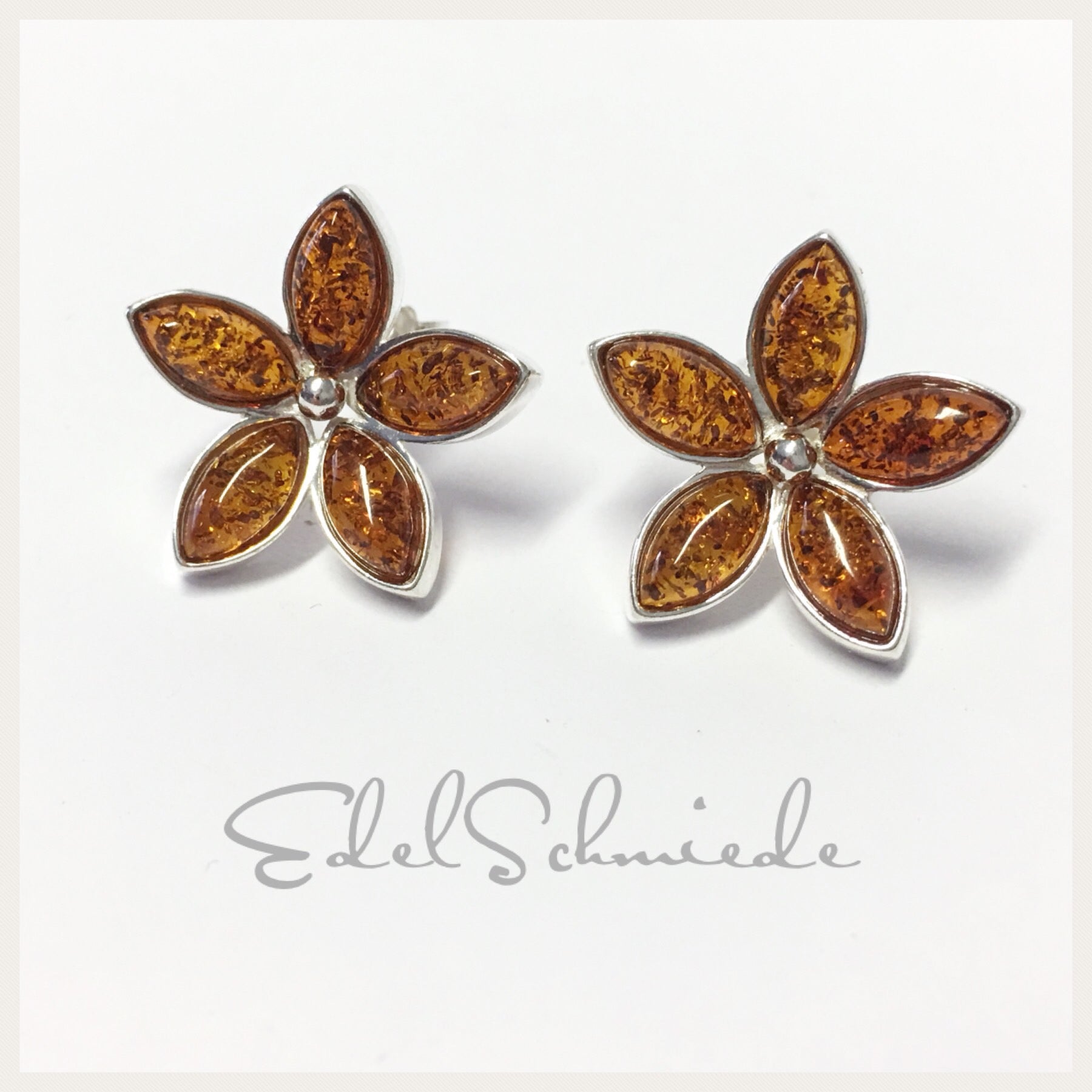Edelschmiede925 edle Ohrstecker in 925 Silber mit Bernstein Blüte