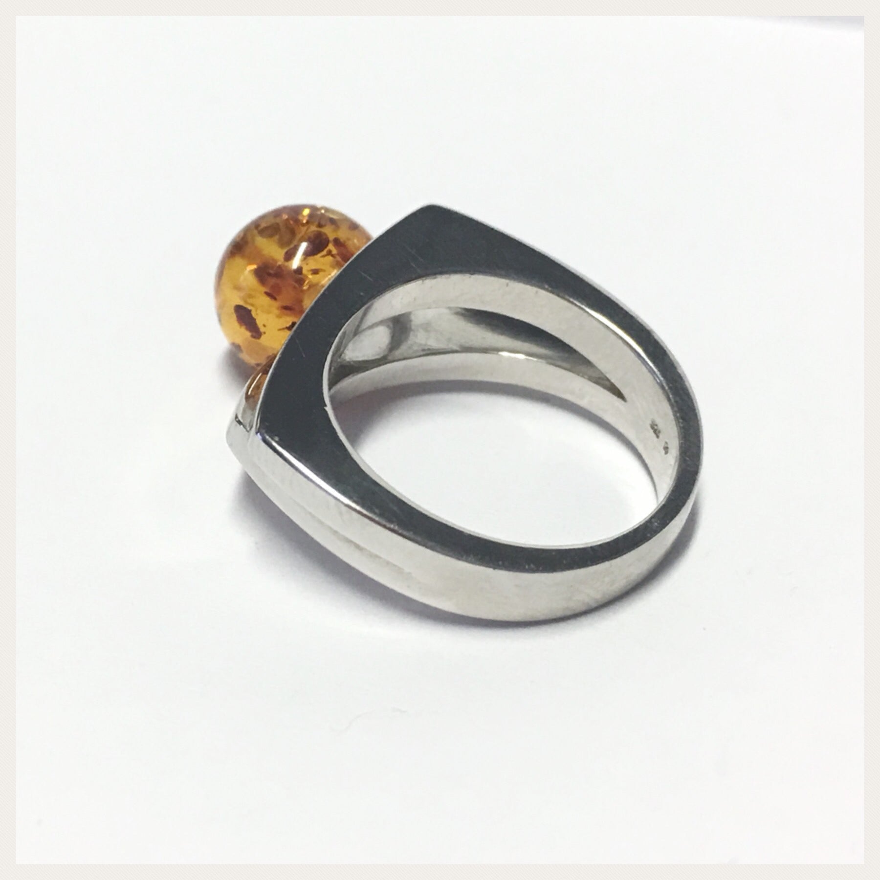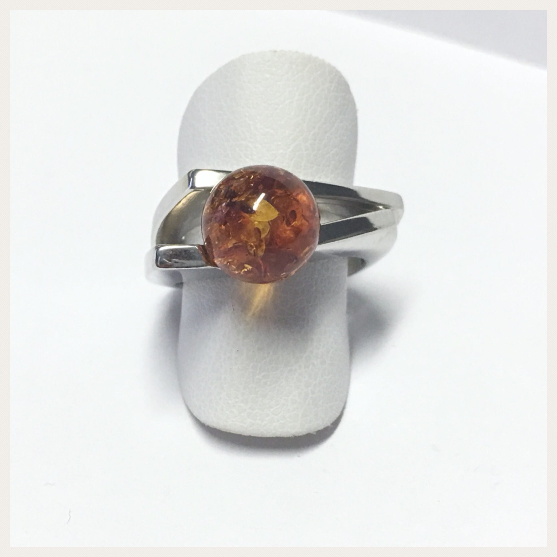 Edelschmiede925 Silberring 925 mit brauner Bernstein Kugel Ringgröße 55