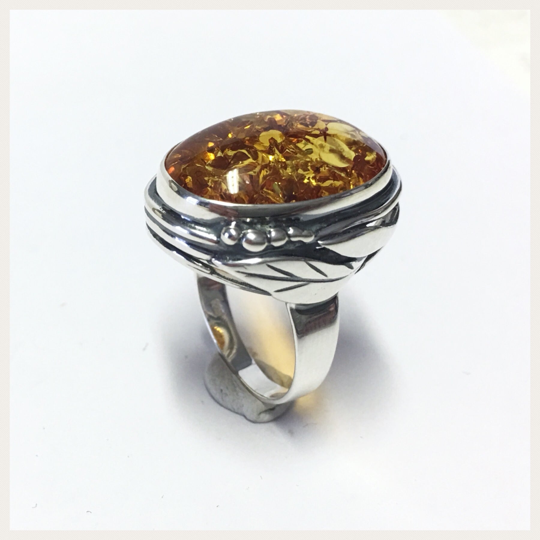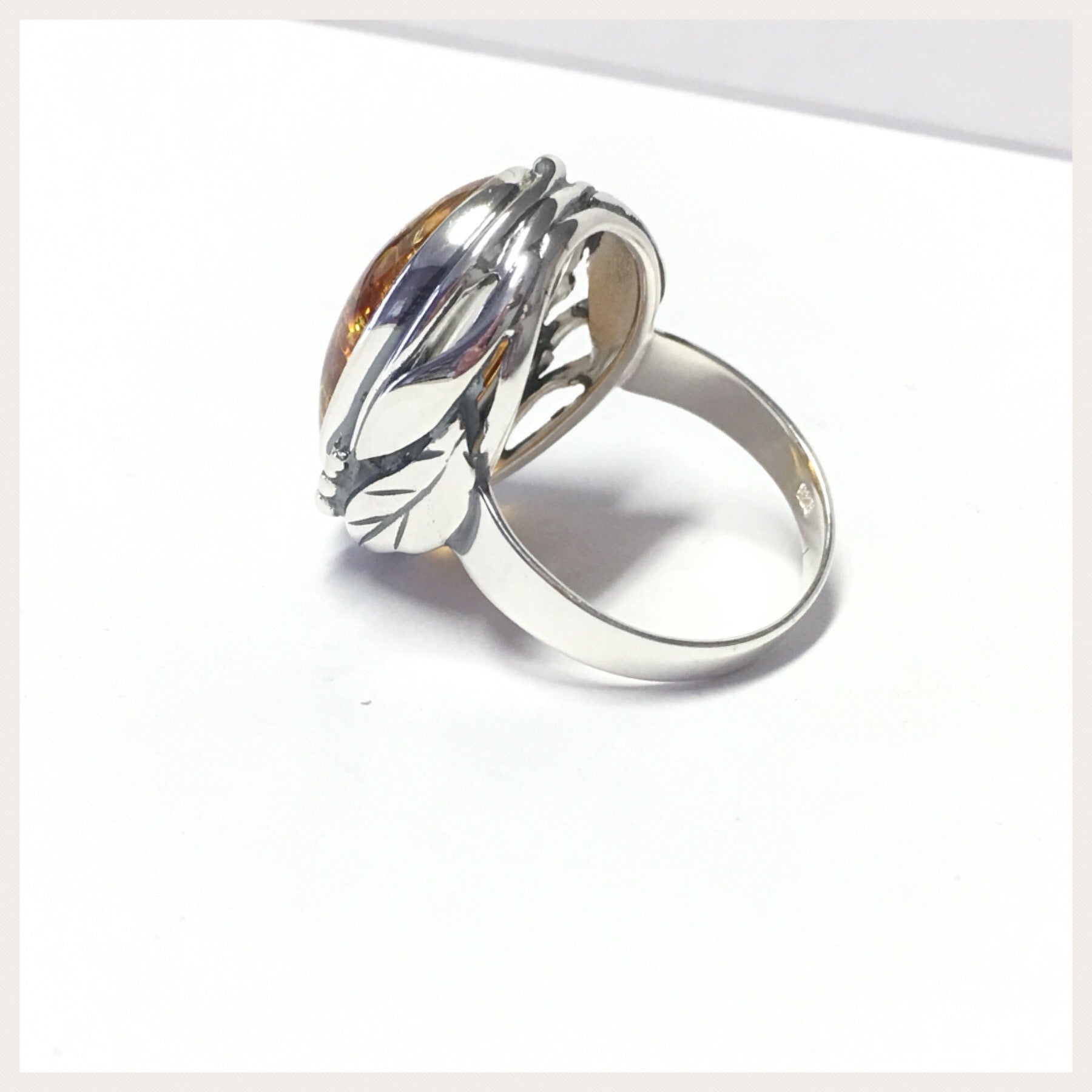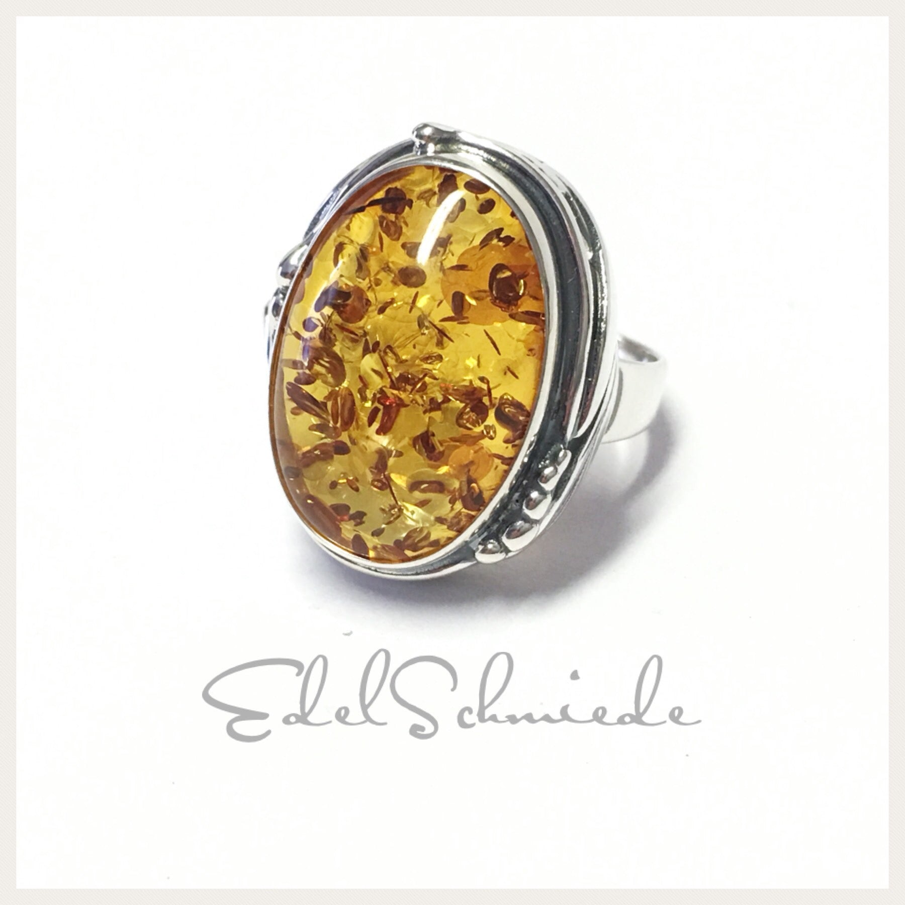 Edelschmiede925 Silberring 925 mit ovalem braunen Bernstein ab Ringgröße 58