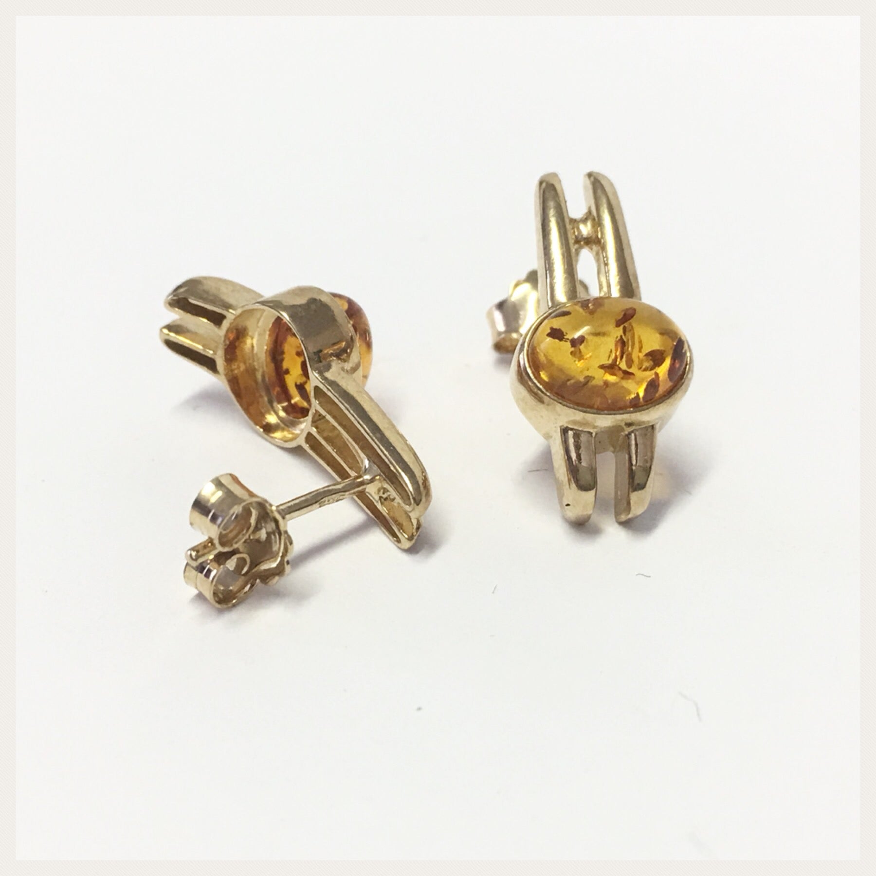 Diese wundervollen Ohrringe sind aus 333/- Gelbgold gefertigt und haben jeweils einen rund geschliffenen Bernstein aufgesetzt. Der Edelstein ist als ovaler Cabochon geschliffen. Rückseitig ist der Ohrsteckerstift mittig angebracht, so dass das Ohrloch sehr gut verdeckt wird.