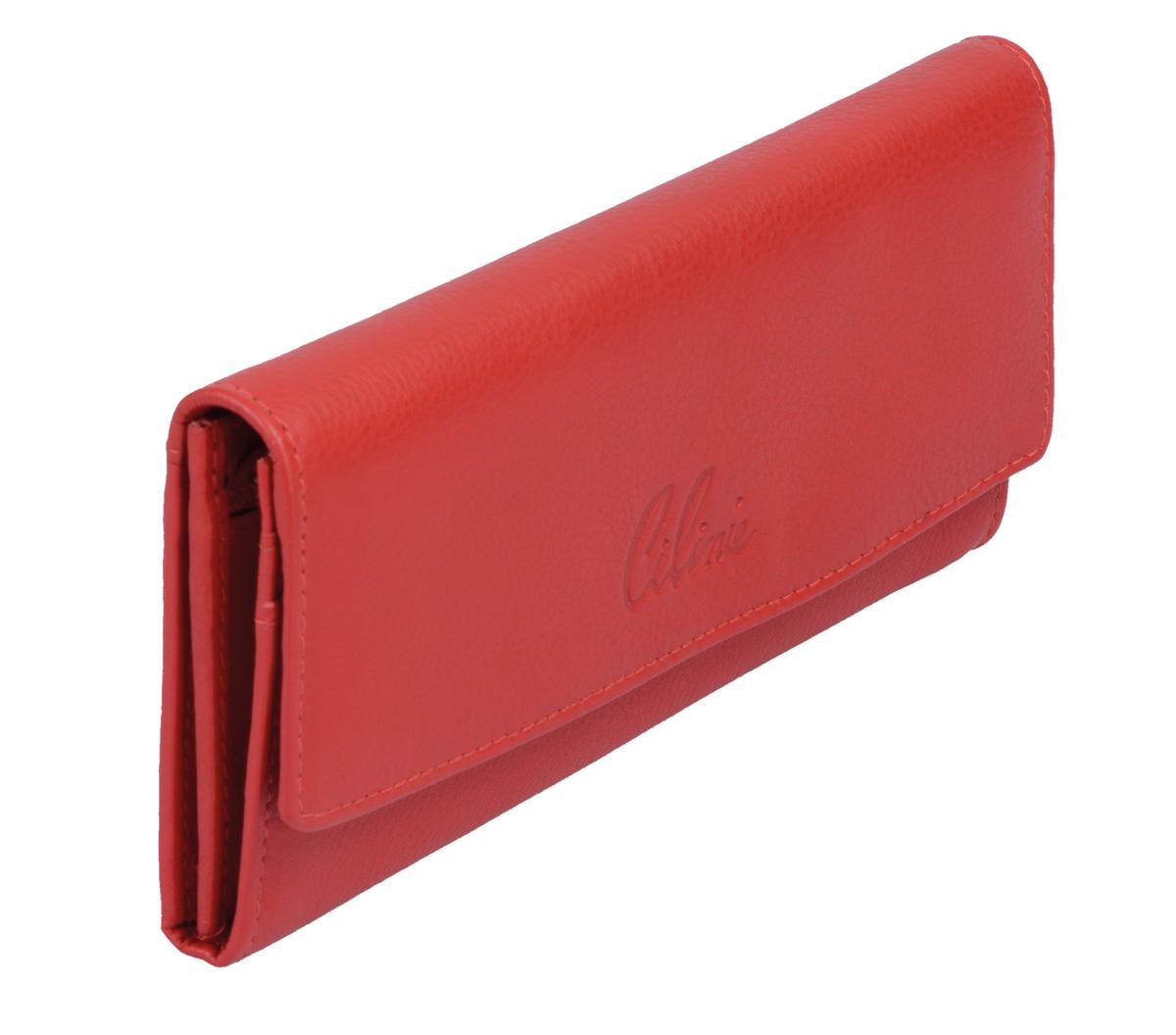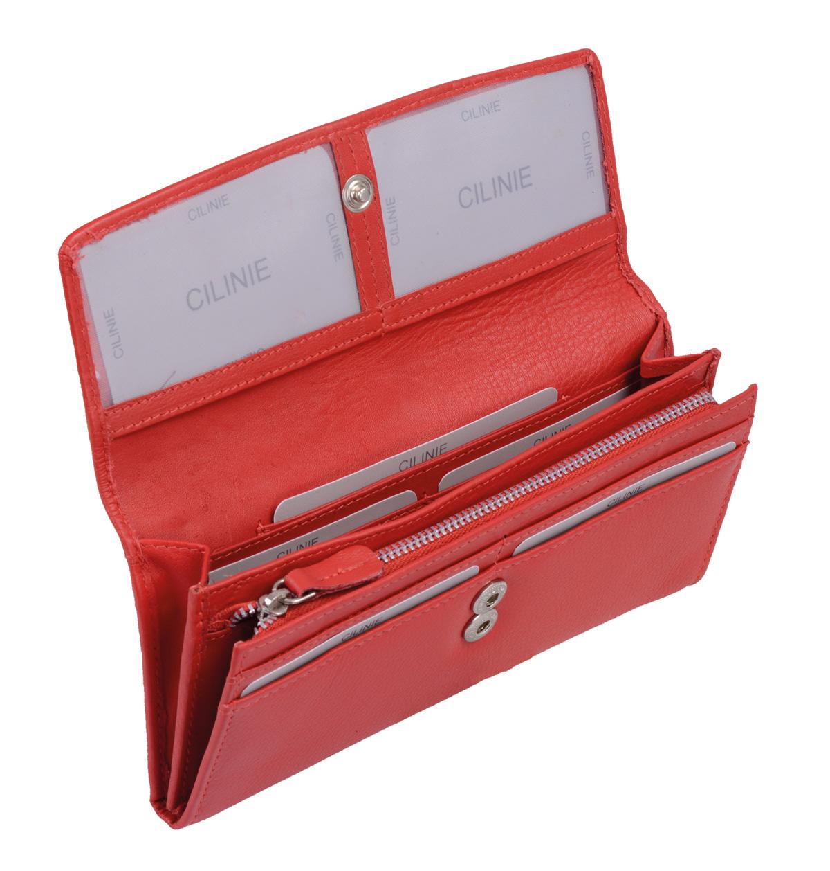 Damen Langbörse CILINIE Leder rot – flaches Portemonnaie mit Druckknopf
