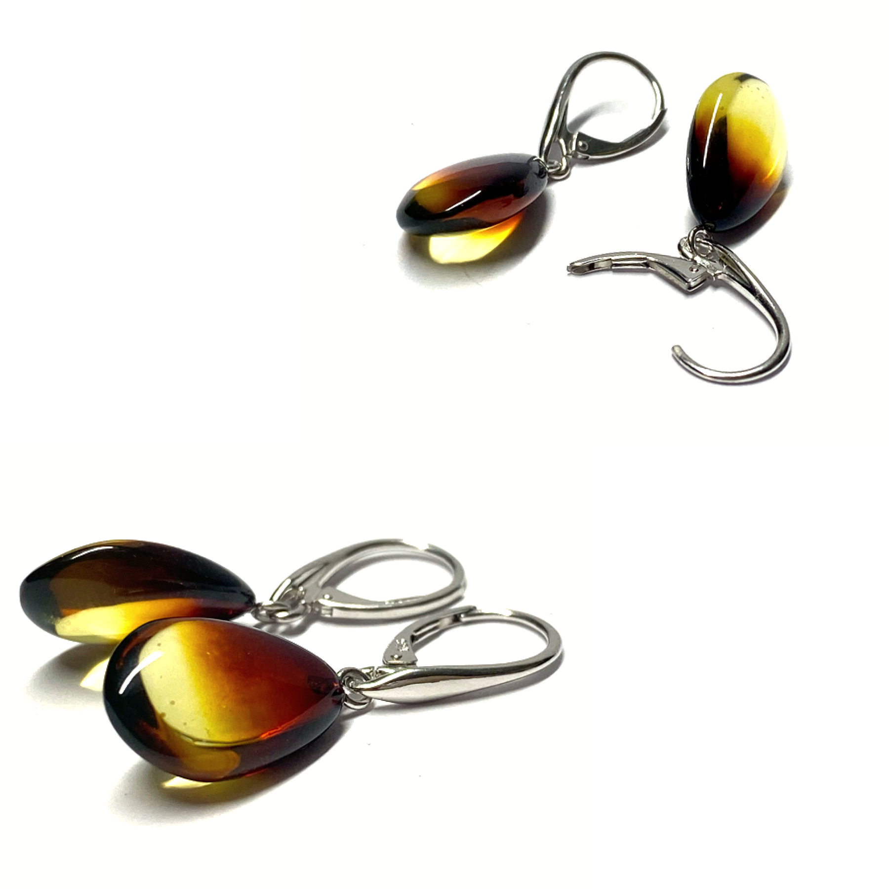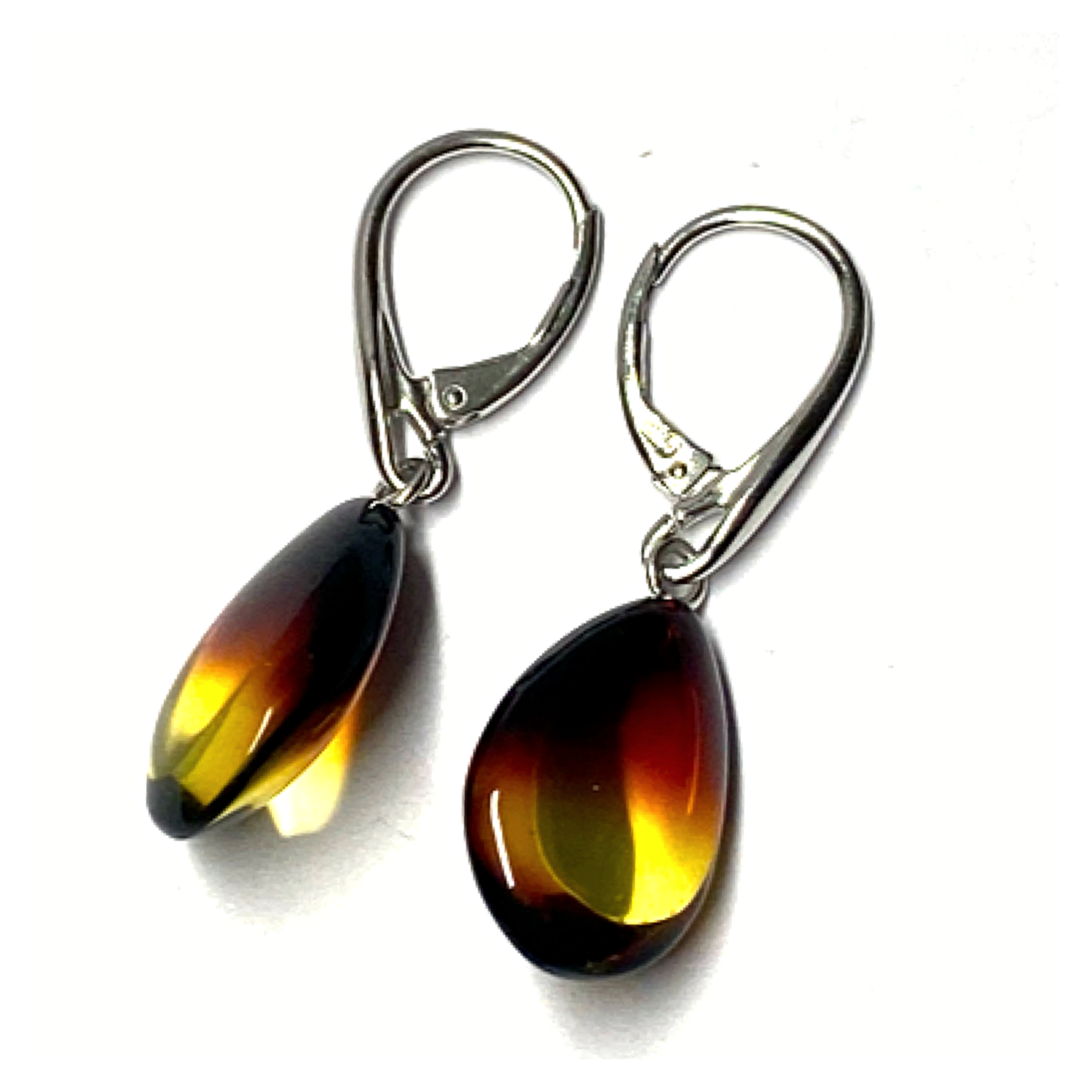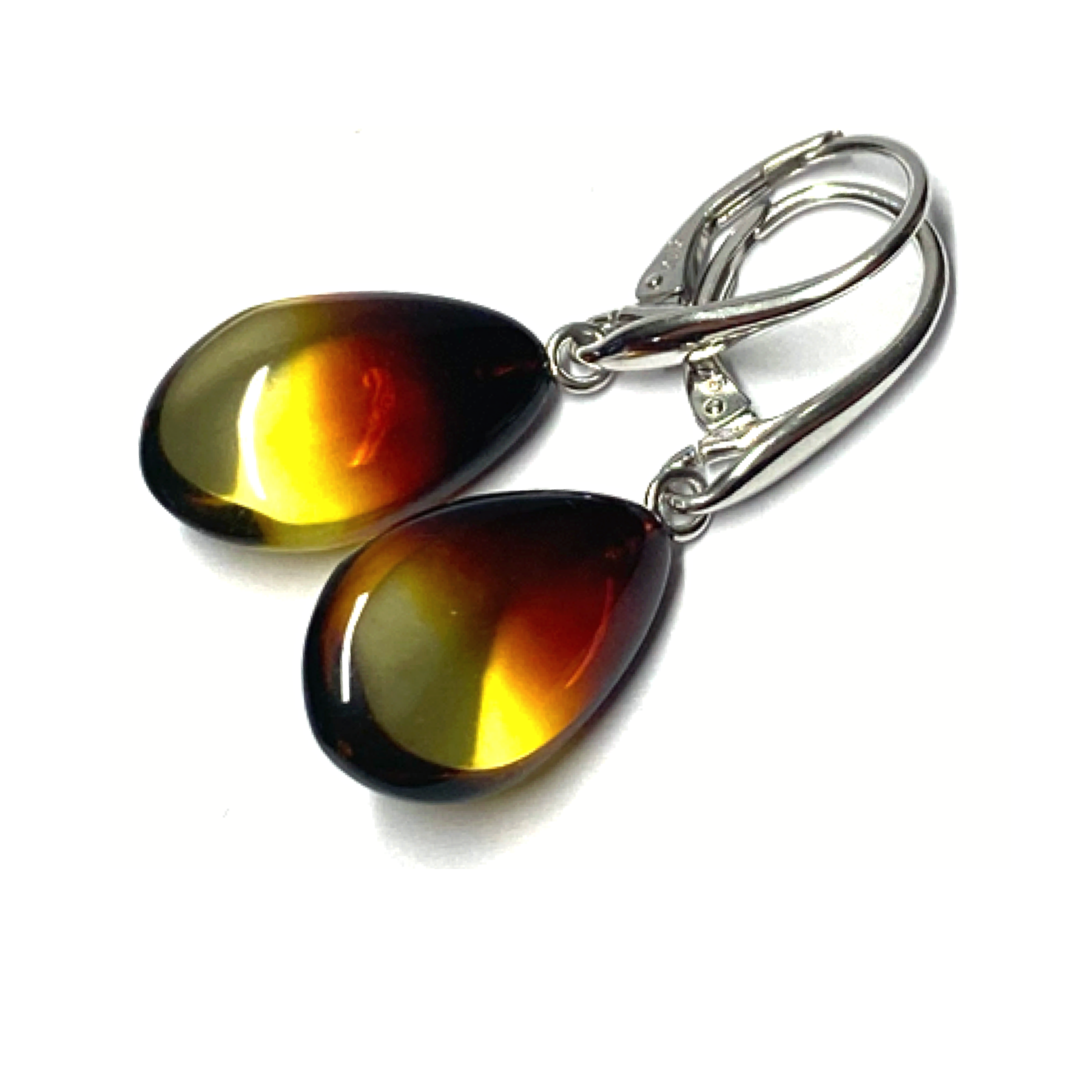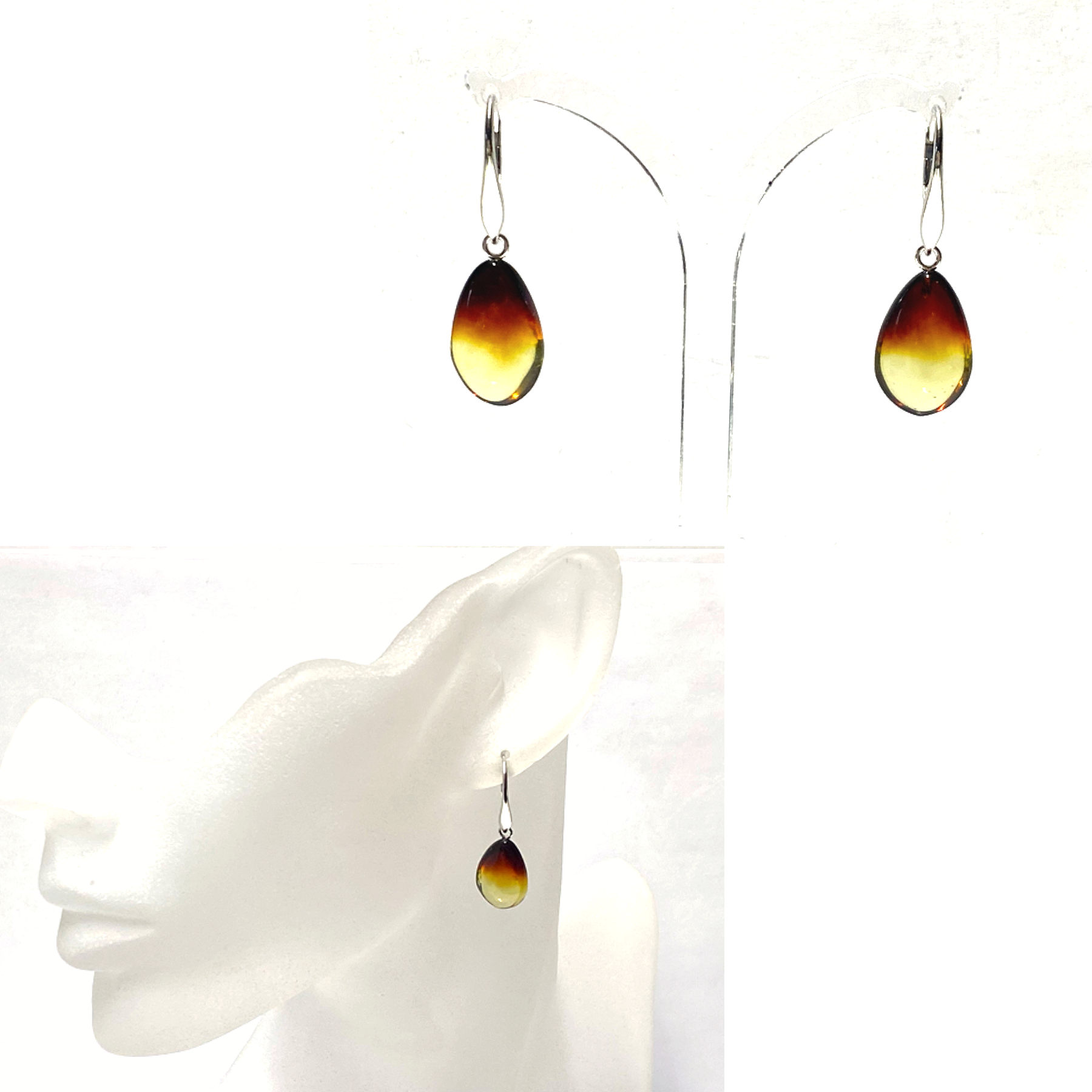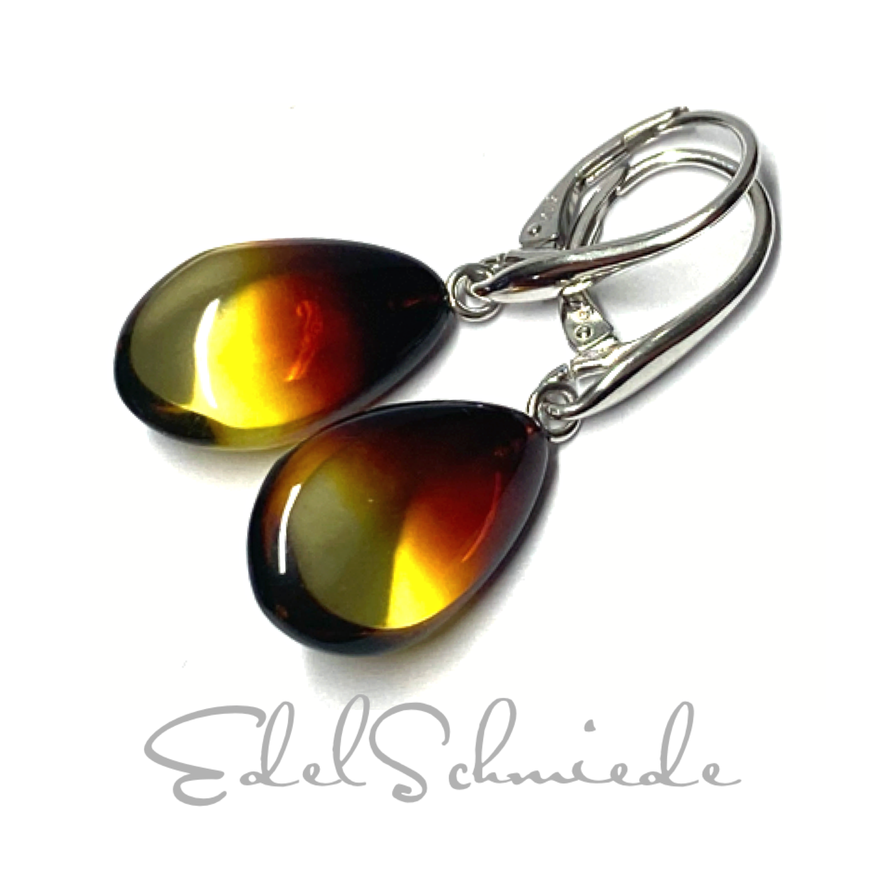 Ohrring 925 Silber rhodiniert Bernstein braun Farbverlauf Tropfen