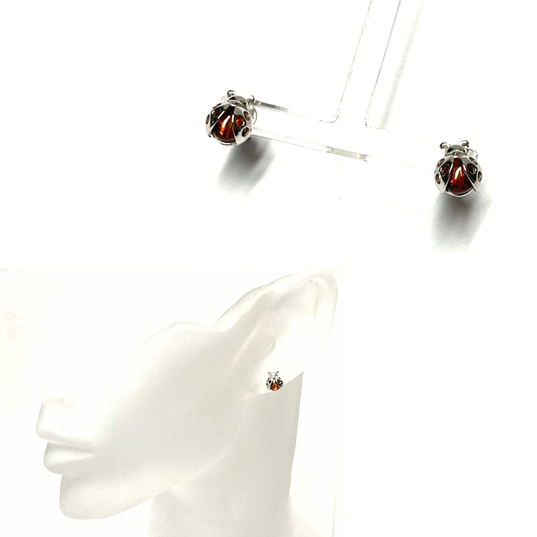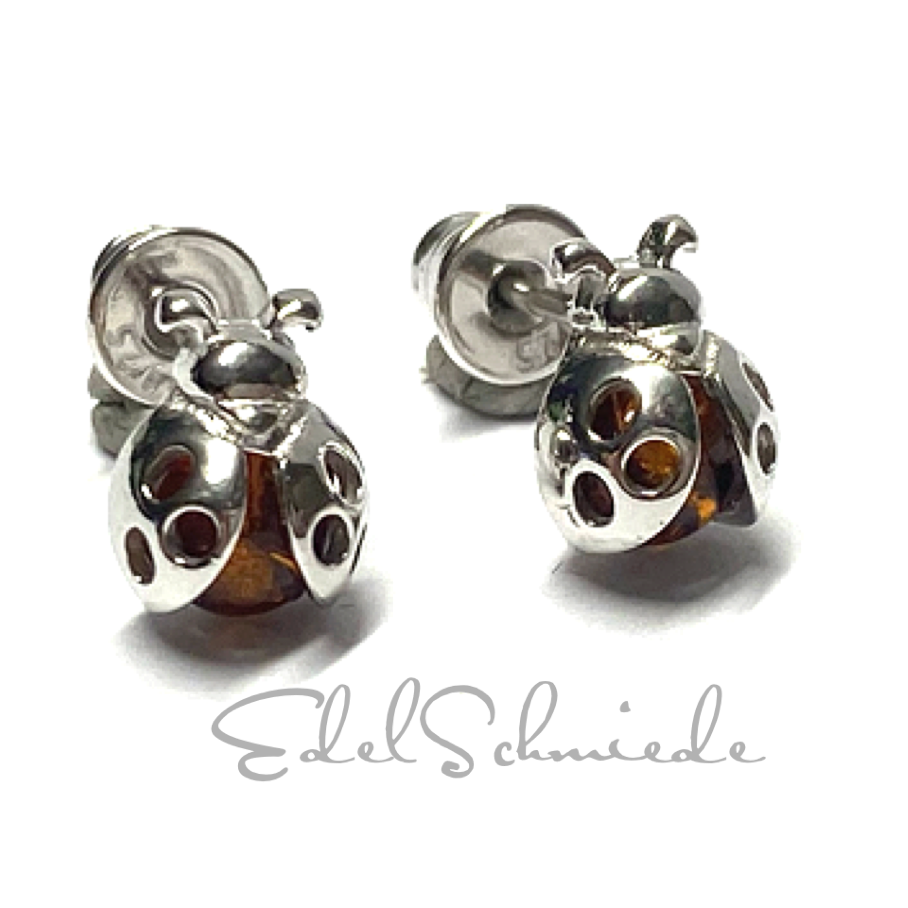 Ohrring 925 Silber rhodiniert Bernstein braun Marienkäfer Ohrstecker Kinderschmuck
