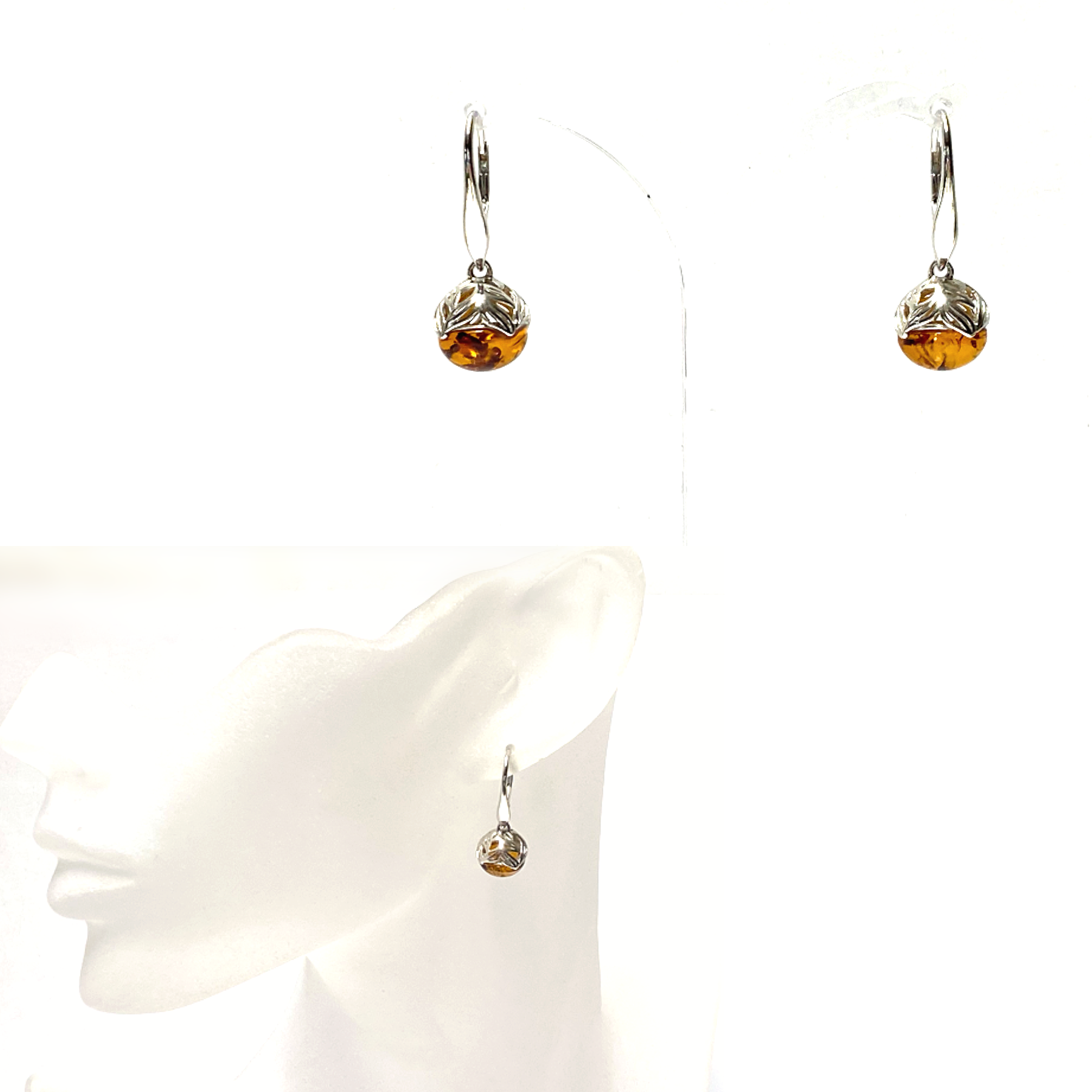 Diese Ohrringe sind aus 925/- Sterling Silber gefertigt und wurden abschließend, als Anlaufschutz, rhodiniert. Sie tragen einen herrlich typisch braunen Bernstein in sich. Der Edelstein ist beweglich mit der Ohrhängermechanik verbunden, so dass sie bei Bewegung frei schwingen kann.