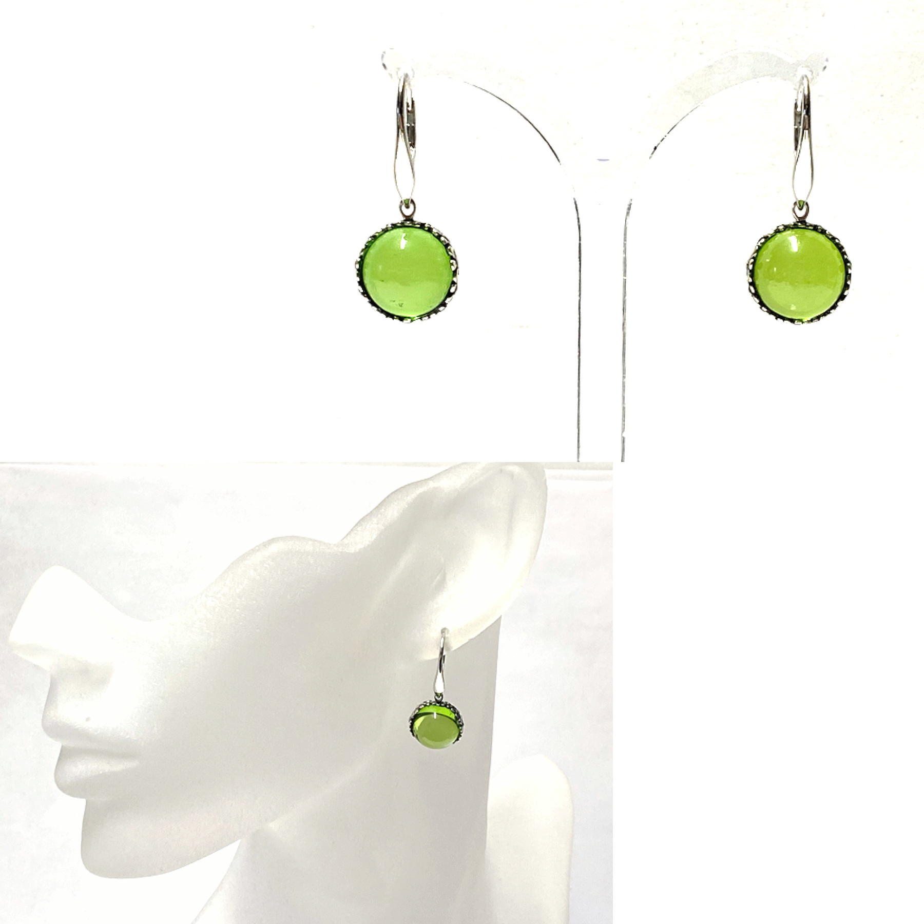 Diese Ohrringe sind aus 925/- Sterling Silber gefertigt und wurden abschließend, als Anlaufschutz, rhodiniert. Sie tragen einen herrlich grünen karibischen Bernstein in sich. Die Farbe bekommt der Bernstein allein durch den einmaligen Fundort. Der BernsteinCabochon ist beweglich mit der Ohrhängermechanik verbunden, so dass sie bei Bewegung frei schwingen kann.