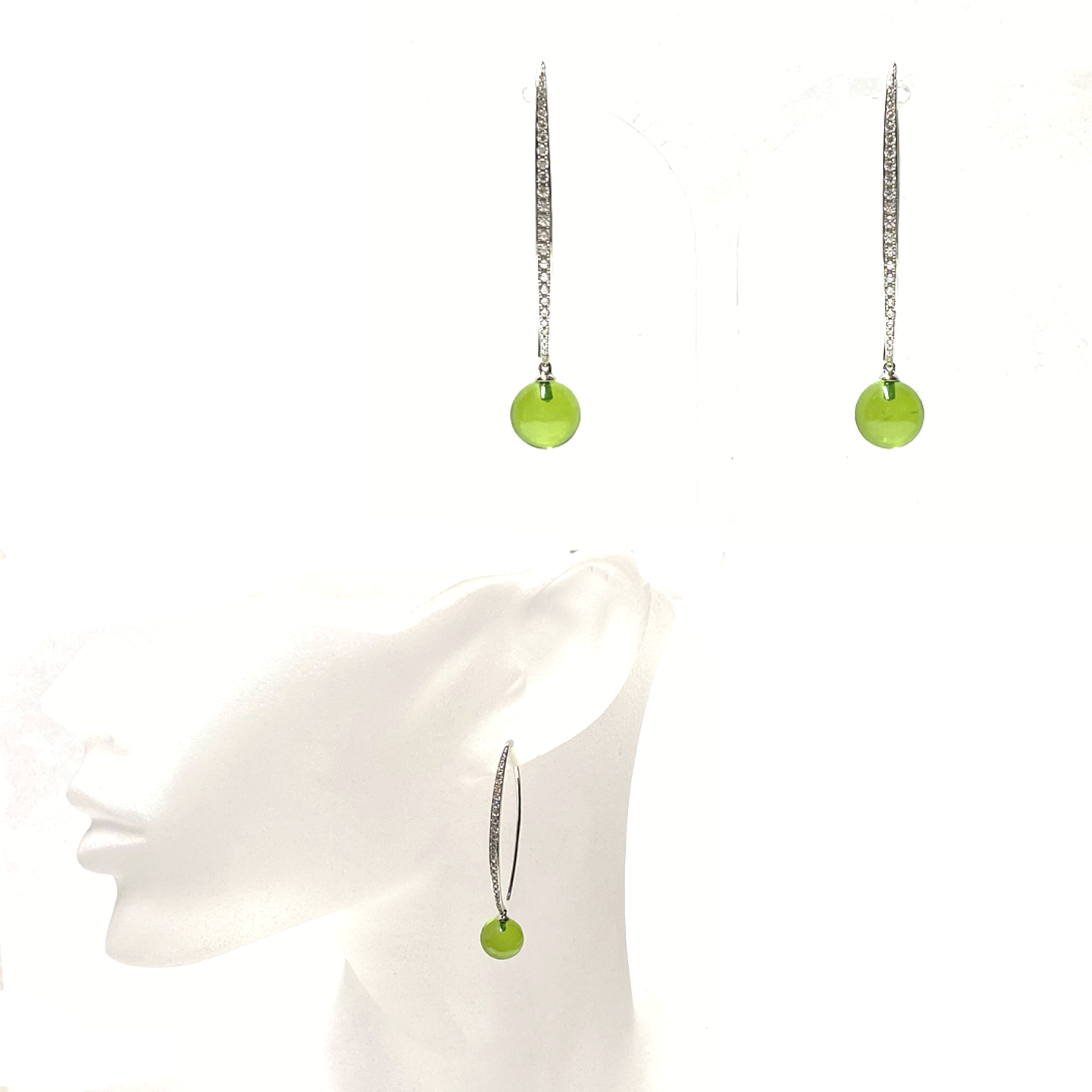 Ohrring 925 Silber rhodiniert Bernstein grün (karibischer Bernstein) Kugel 10mm Zirkonia Ohrhänger