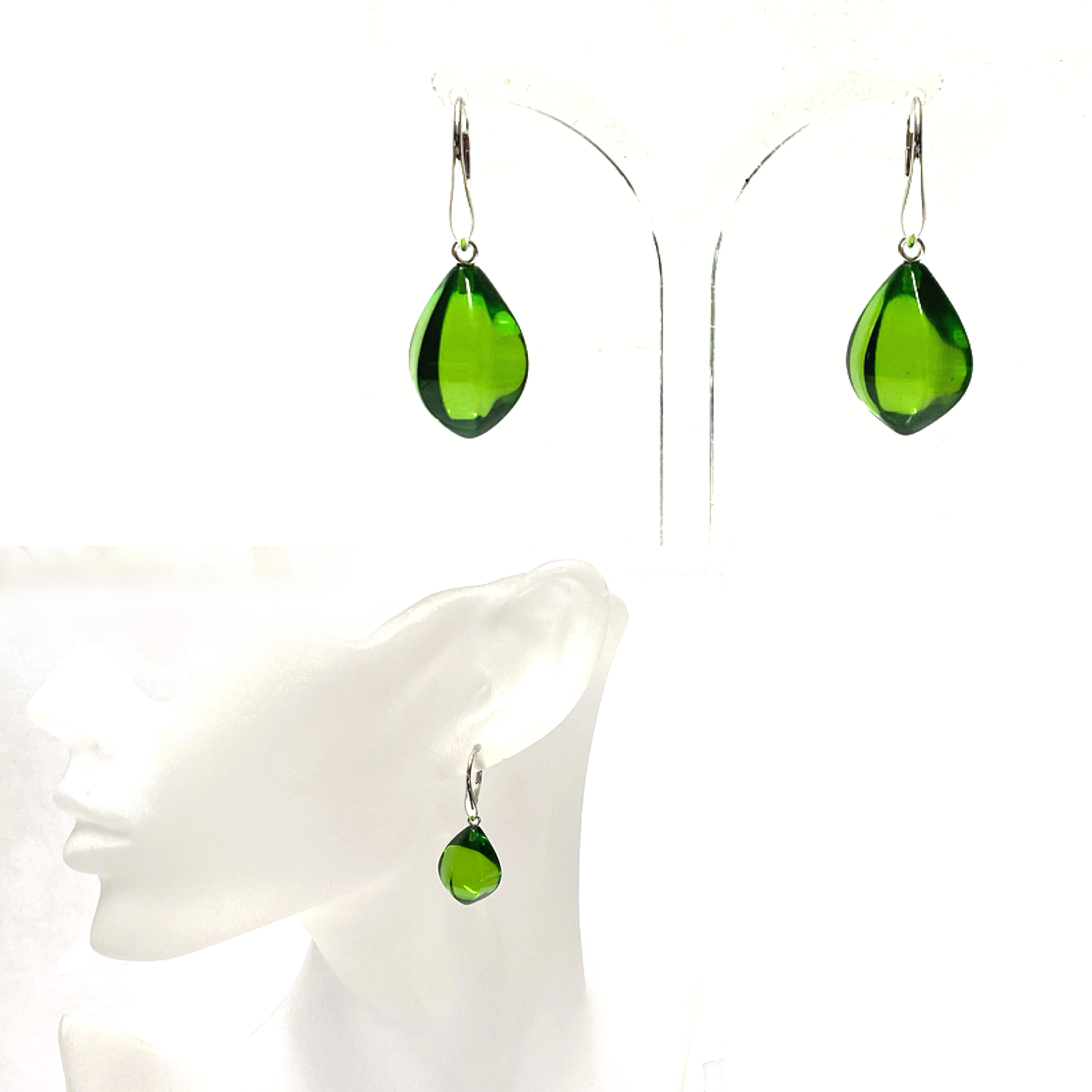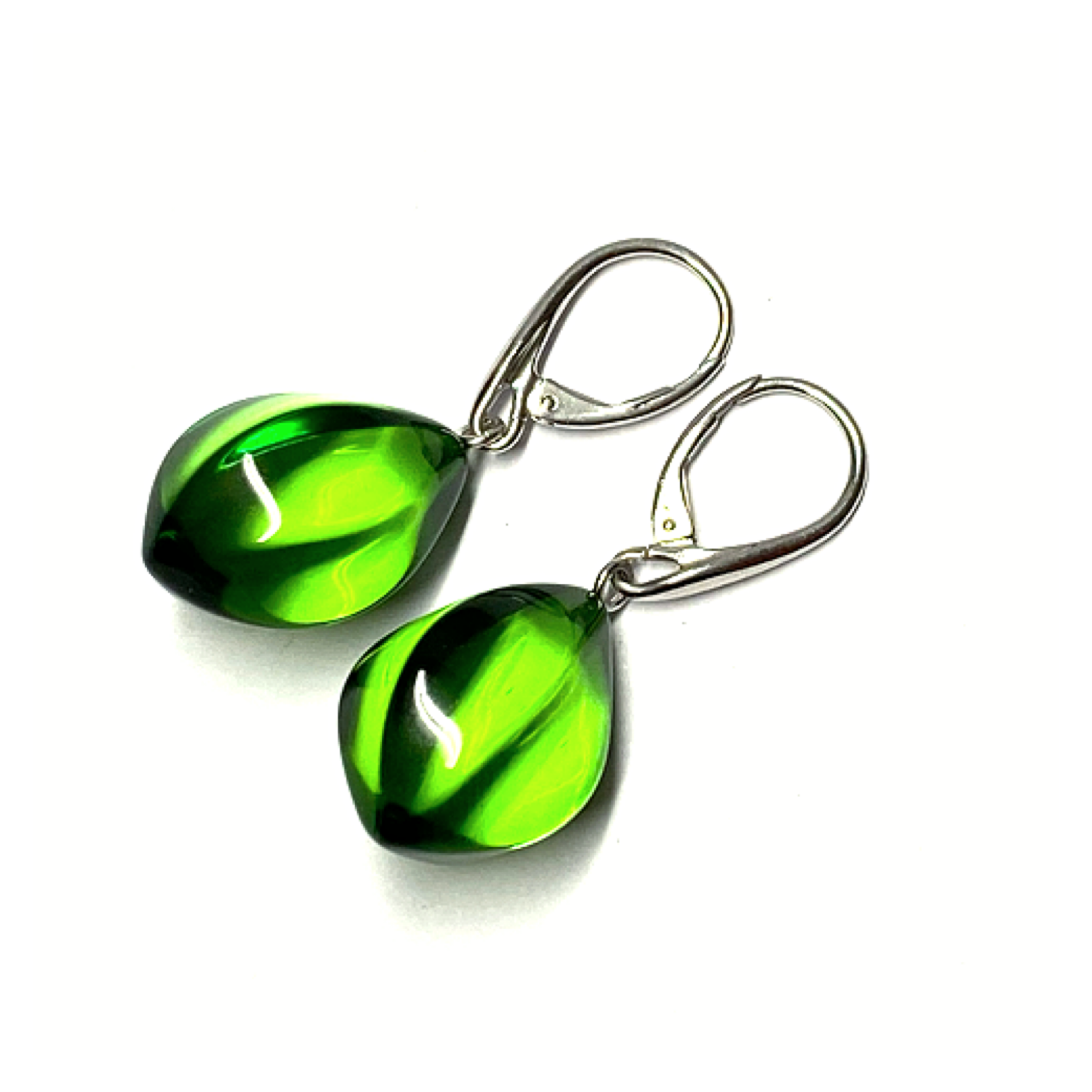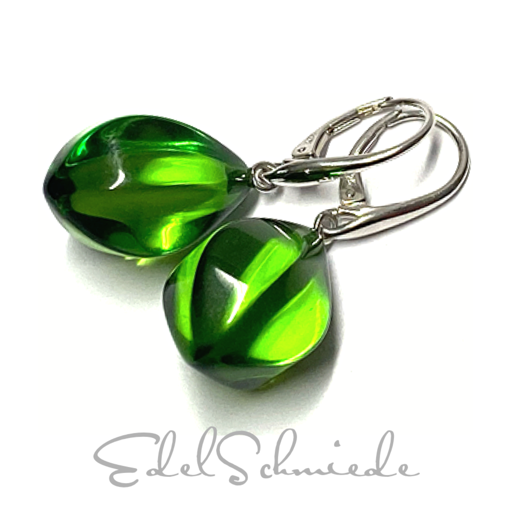 Ohrring 925 Silber rhodiniert Bernstein grün (karibischer Bernstein) Tropfen geschliffen Ohrhänger Ohrbrisur