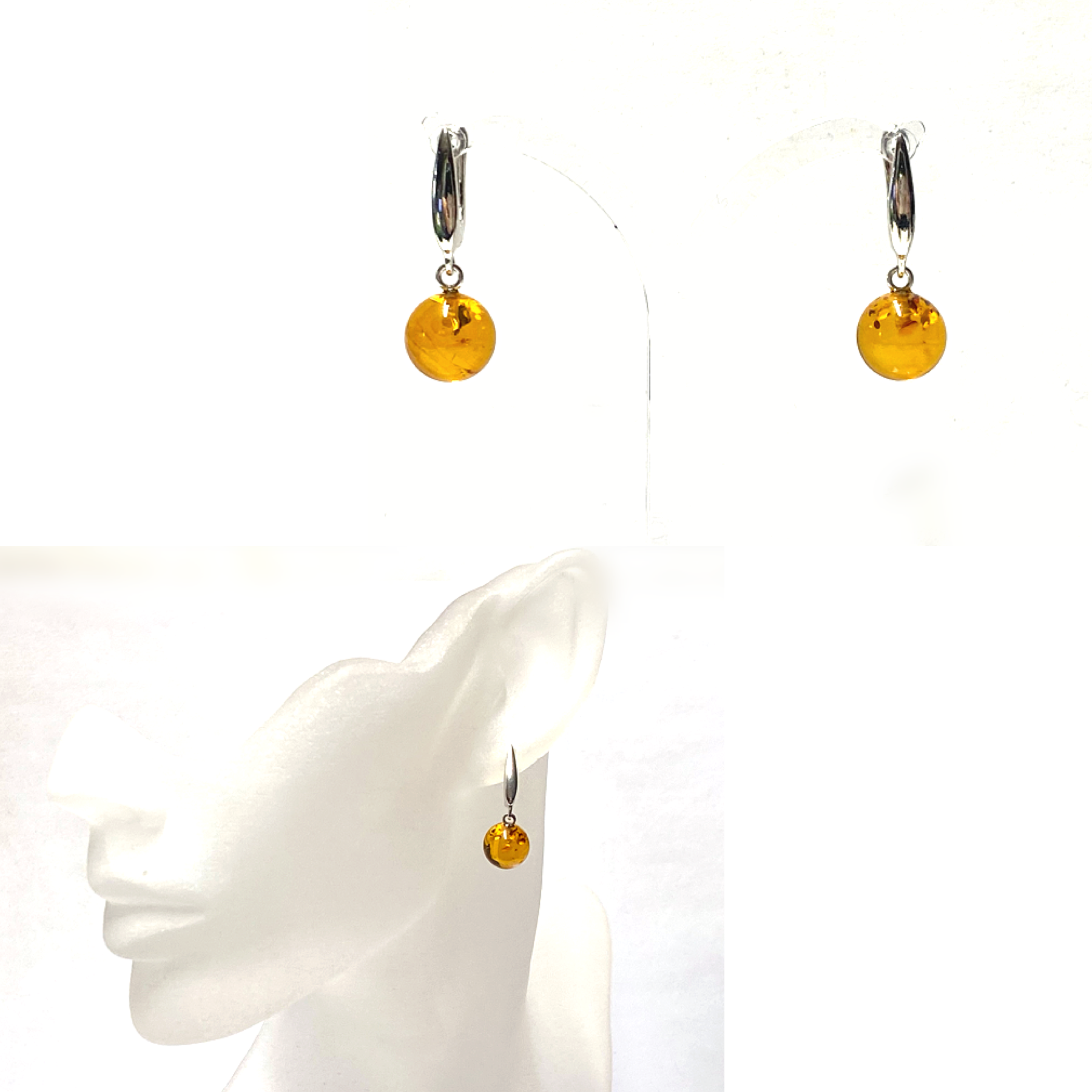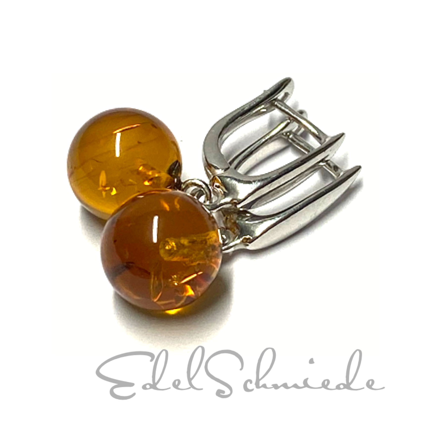 Ohrring 925 Silber rhodiniert Bernstein Kugel 10mm Ohrhänger