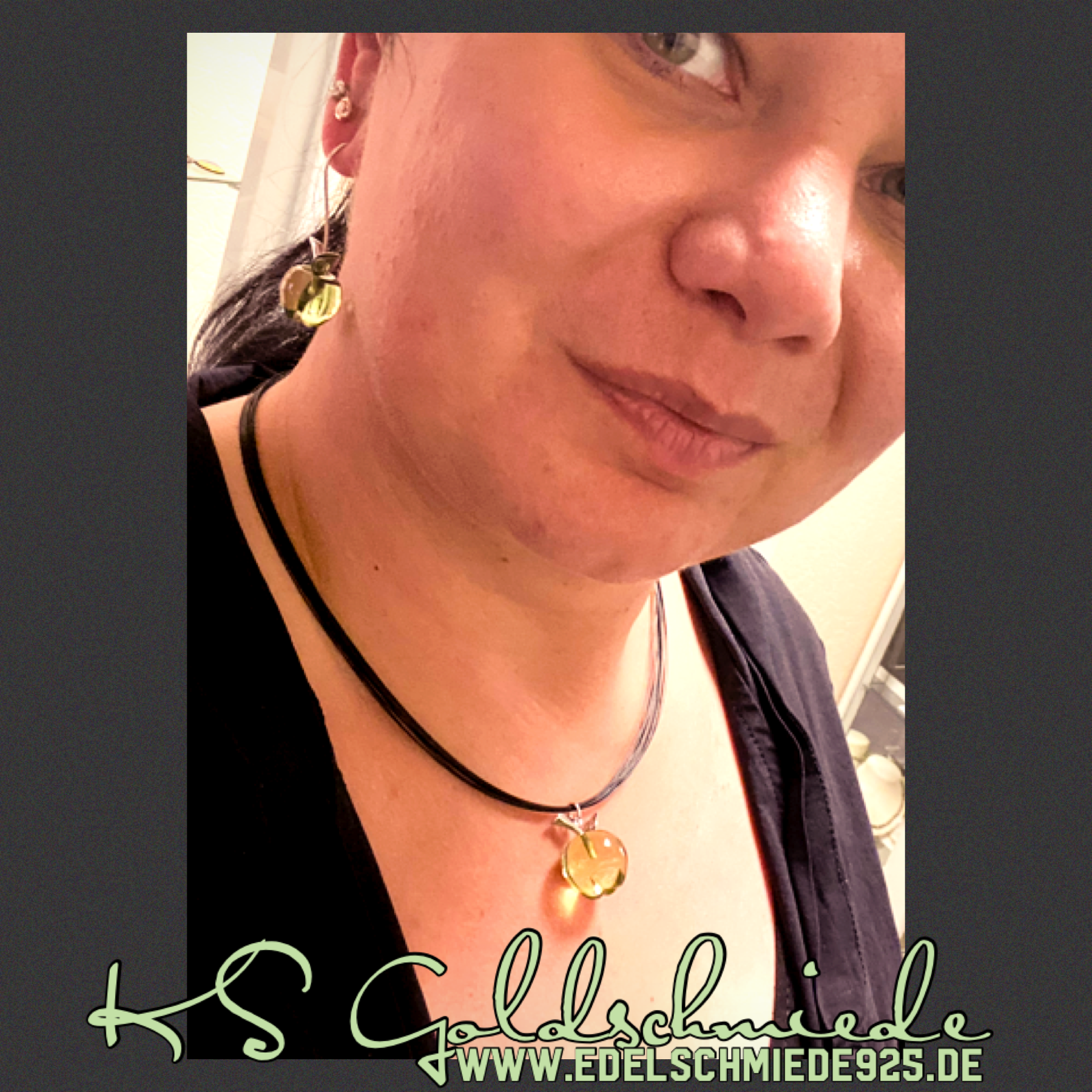 Ohrring 925/- Silber rhodiniert karibischem Bernstein Apfelform modern Unikatschmuck Einzelstück Ohrhänger