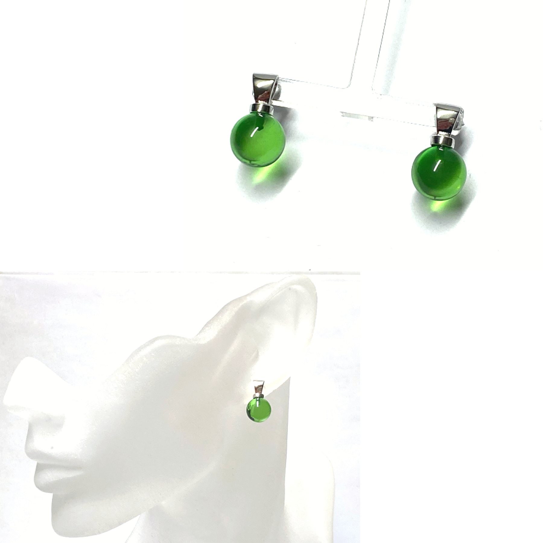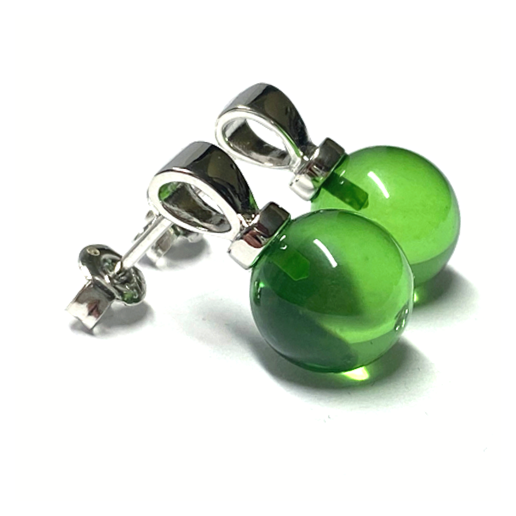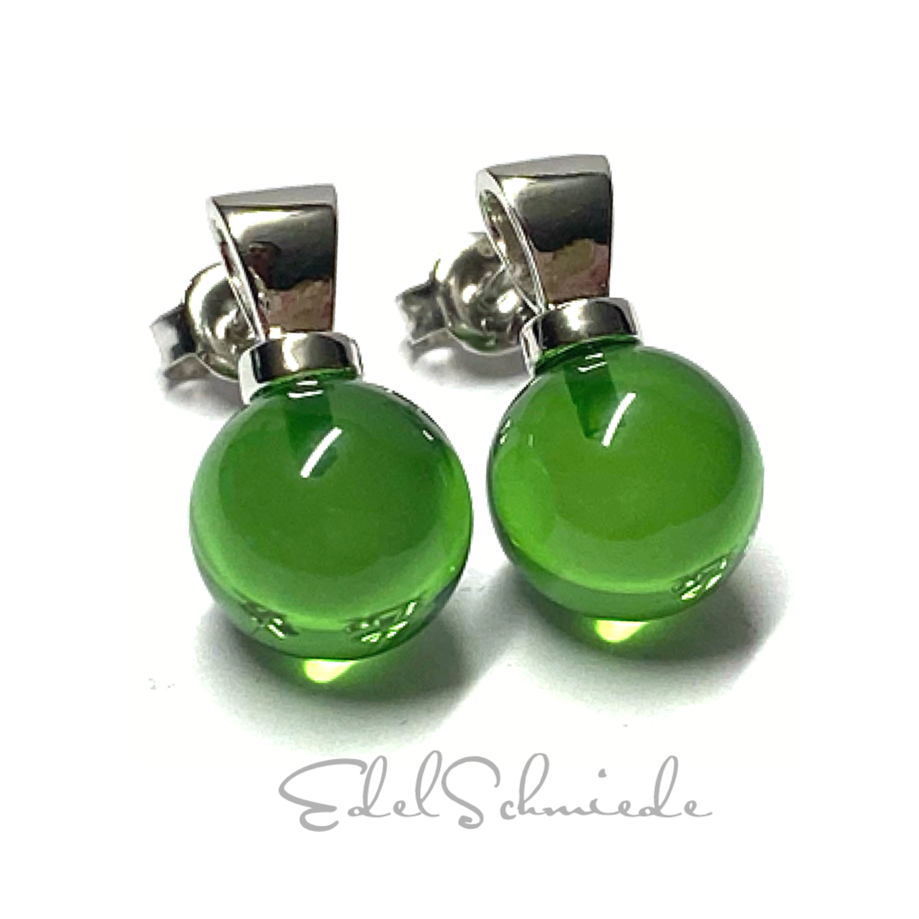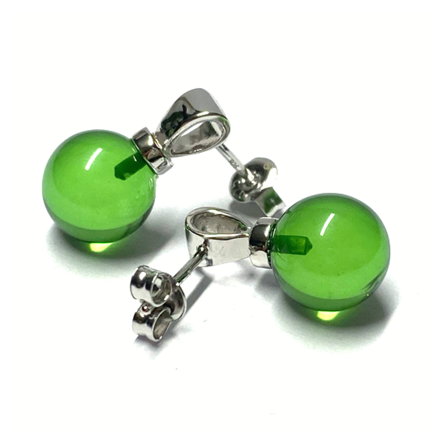 Ohrstecker 925 Silber rhodiniert Bernstein grün (karibischer Bernstein) Kugel 10mm Ohrring