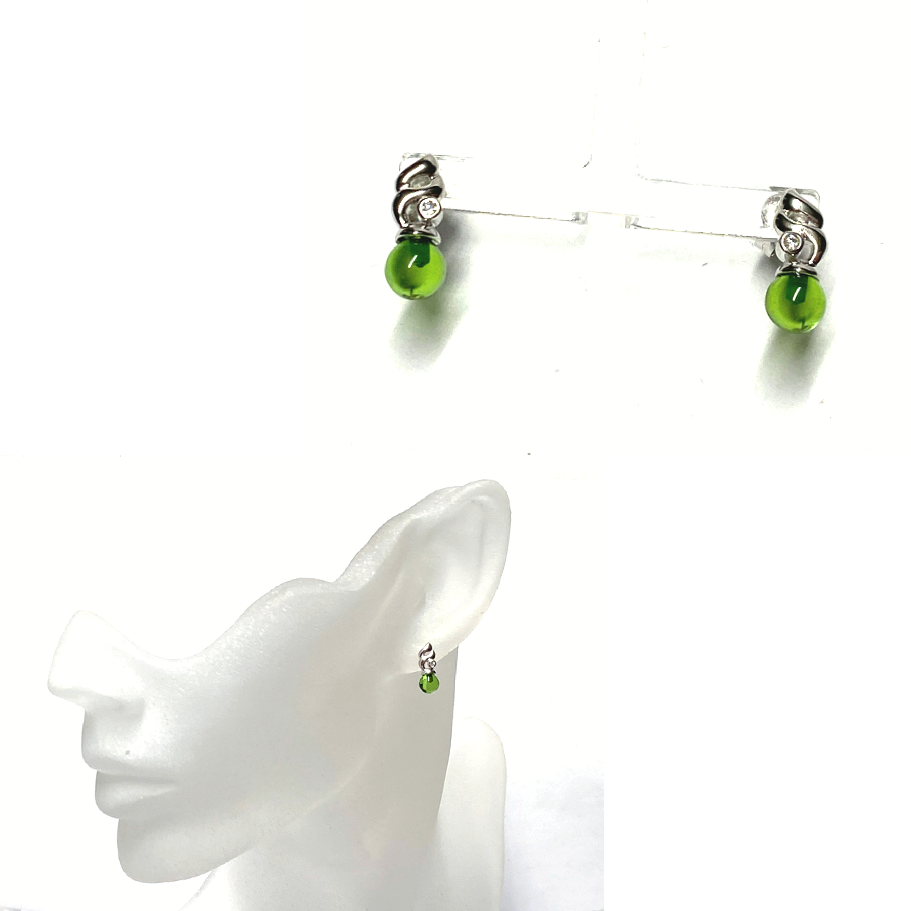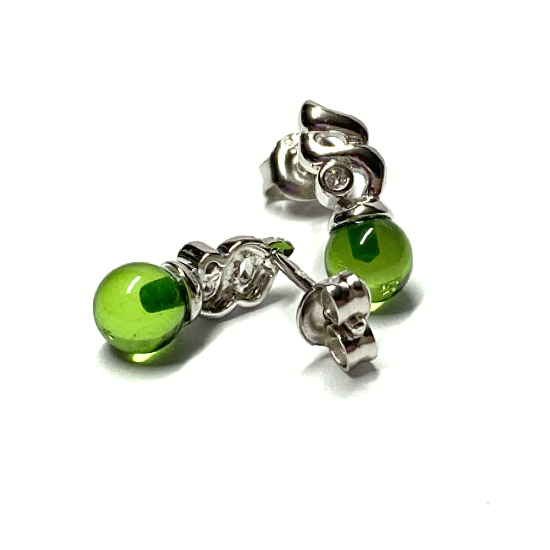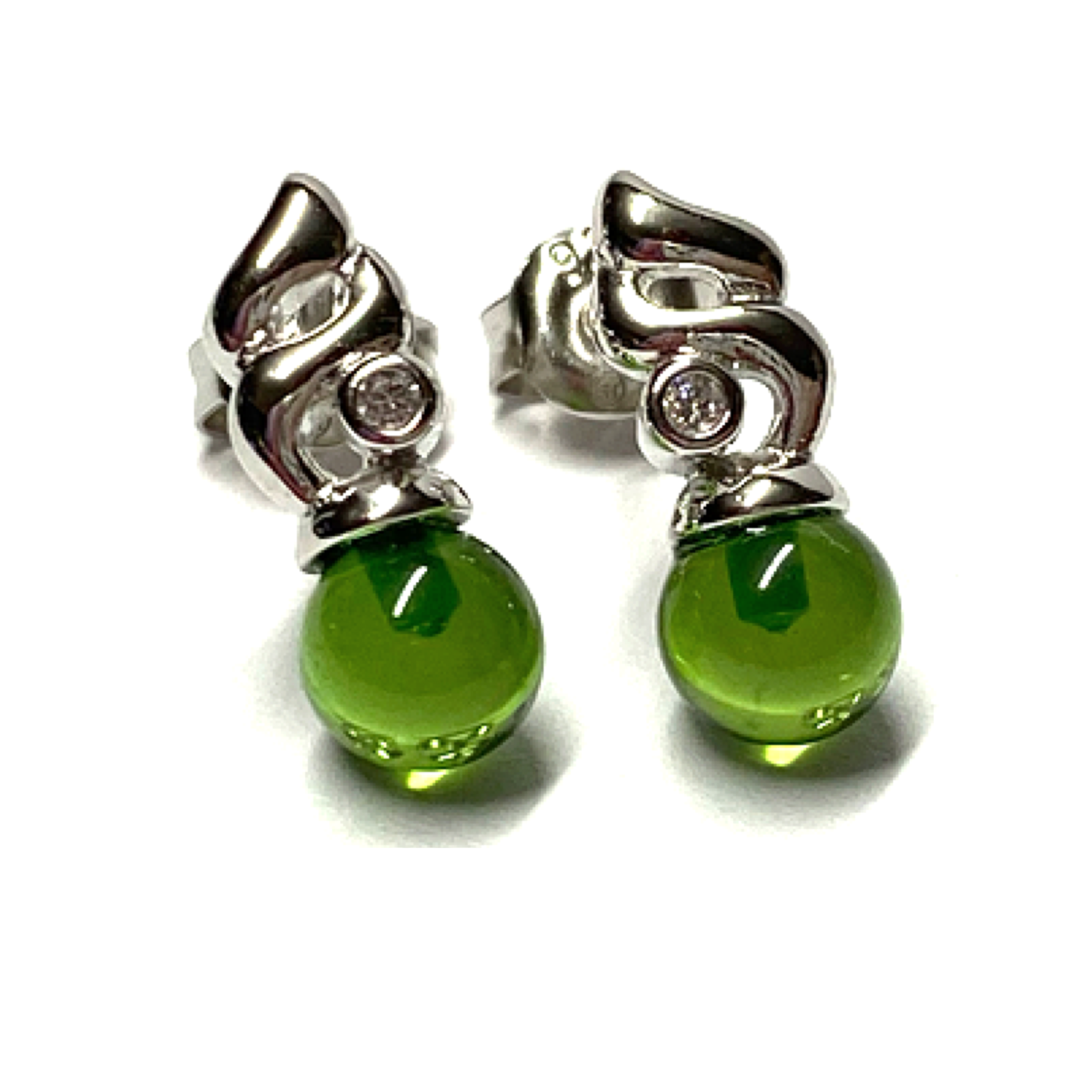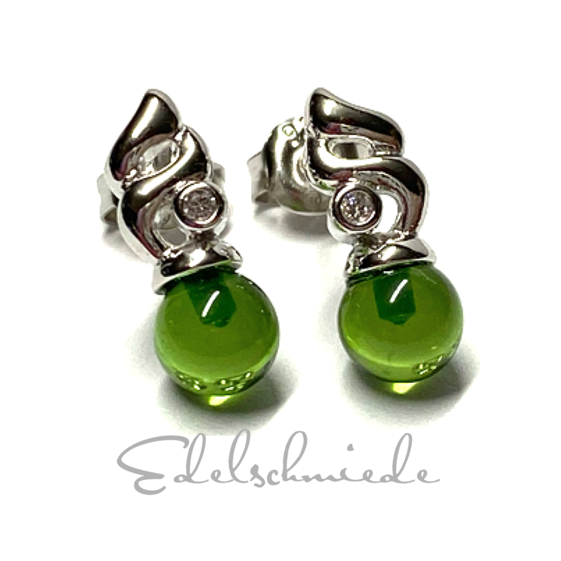 Ohrstecker 925 Silber rhodiniert Bernstein grün (karibischer Bernstein) Kugel Zirkonia Ohrring