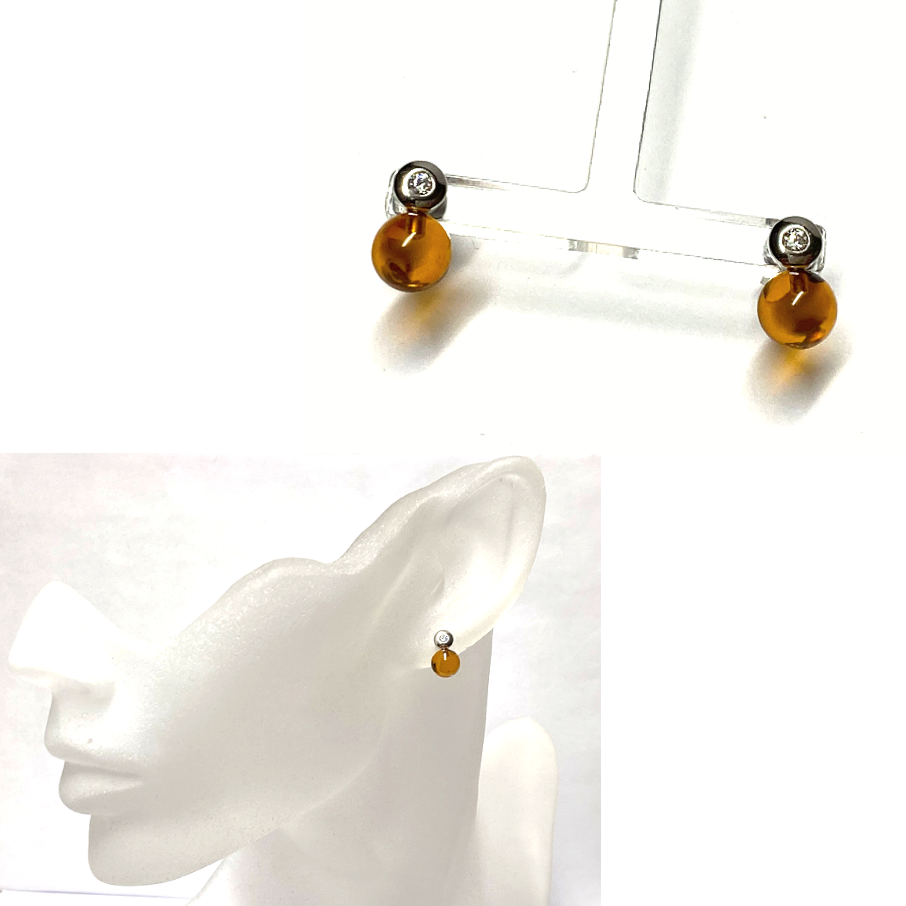 Ohrstecker 925 Silber rhodiniert Bernstein Kugel 7mm Zirkonia Ohrring