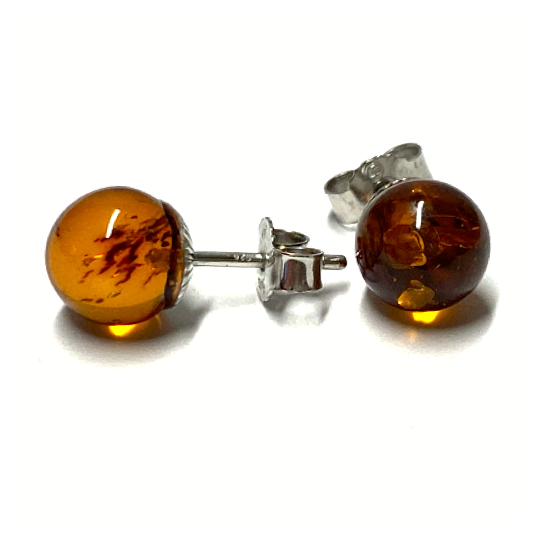 Diese Ohrstecker sind aus 925/- Sterling Silber gefertigt und tragen einen typischen Bernstein, sicher aufgesetzt, in sich. Der braune und klare Bernstein hat deutlich sichtbare Einschlüsse und wurde in einer runden Form geschliffen.