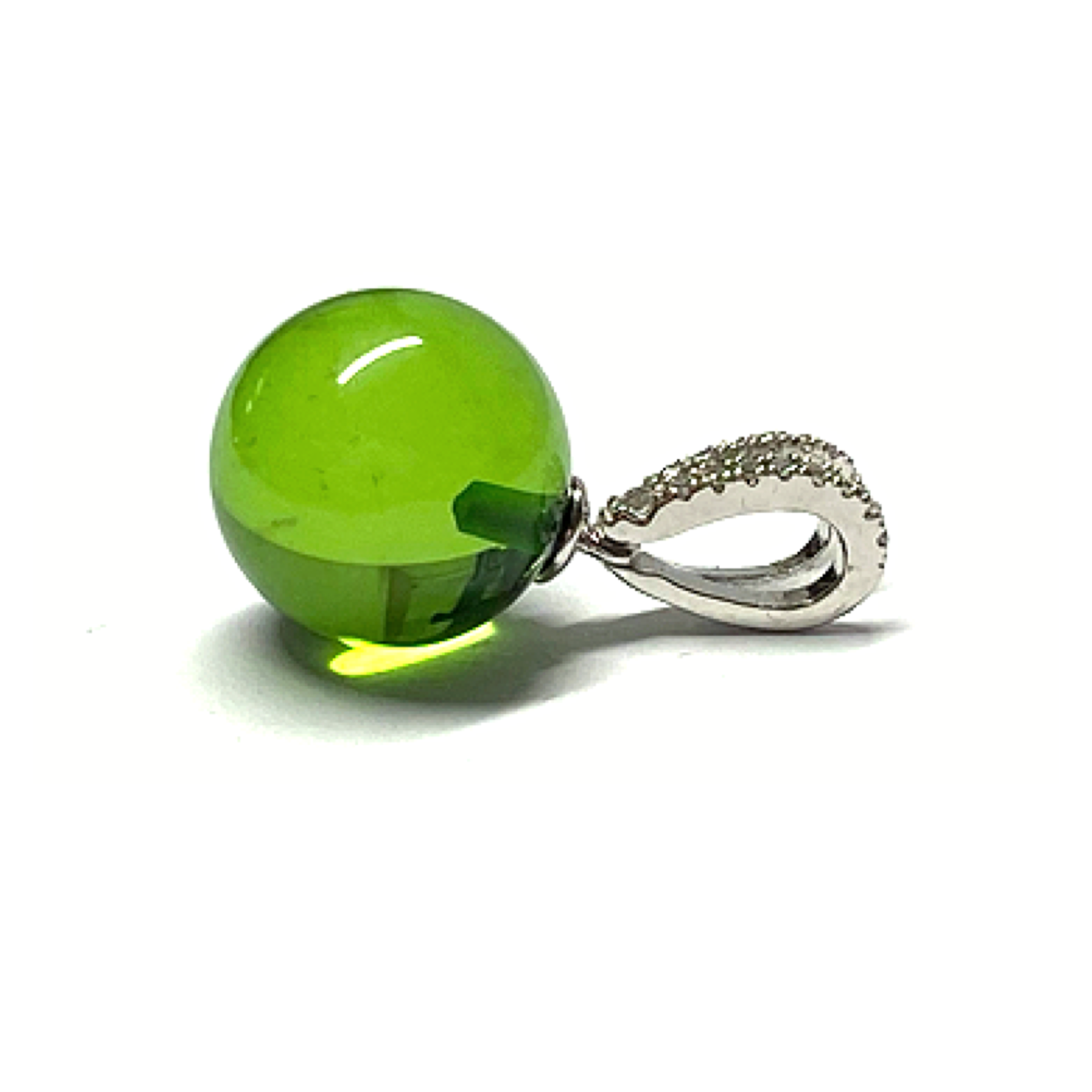 Silberanhänger 925/- rhodiniert karibischer Bernstein grün Kugel 11mm + Zirkonia Kettenanhänger