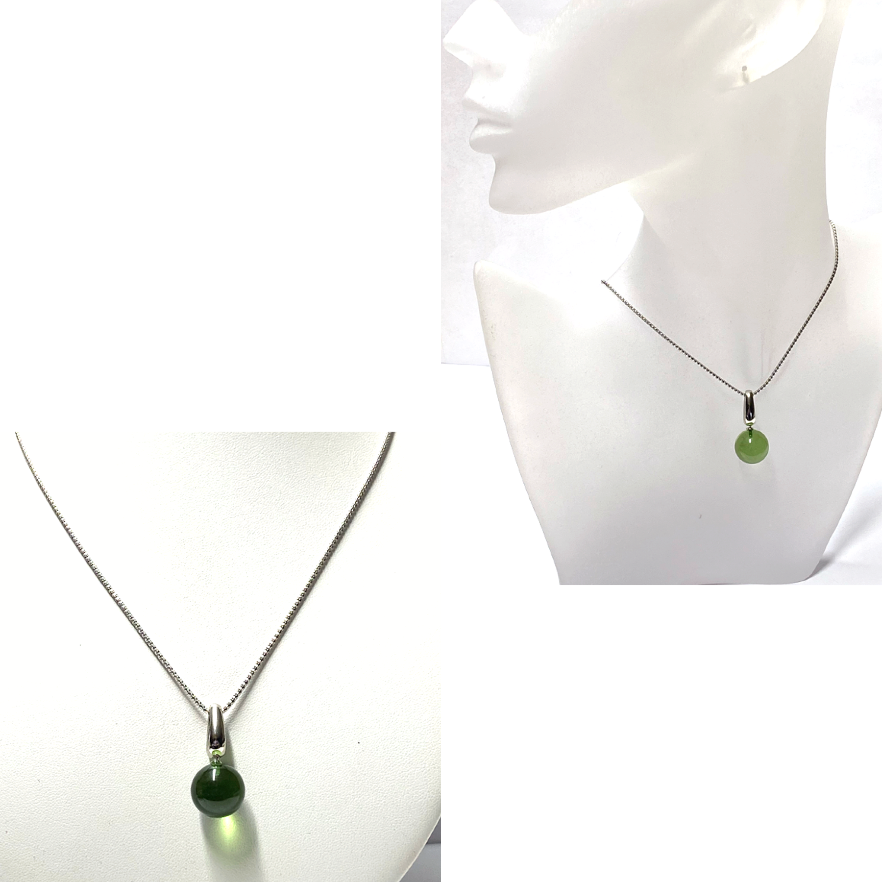 Dieser edle Kettenanhänger ist aus 925/- Sterling Silber gefertigt und wurde abschließend, als Anlaufschutz, rhodiniert. Eine wunderbar grüne Kugel bildet den Hingucker. Die Kugel ist aus dem noch eher unbekannten karibischem Bernstein. Über die beweglich montierte Anhängerschlaufe können Sie eine Kette Ihrer Wahl einfädeln. Die hier abgebildete Kette ist allerdings bereits im Lieferumfang enthalten und wird verschlossen mit einem Karabiner und Gegenöse bei 46cm.