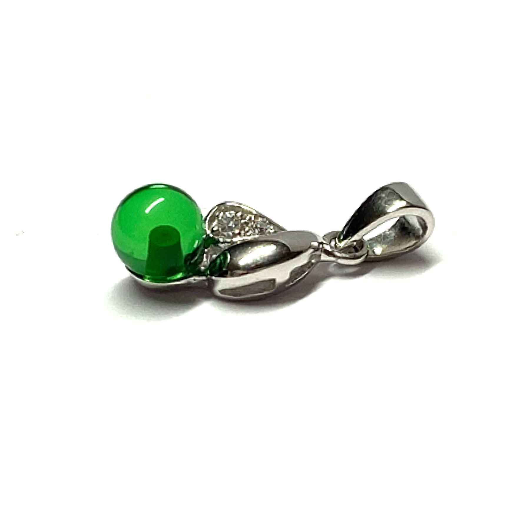 Silberanhänger 925/- rhodiniert karibischer Bernstein grün Kugel 5mm + Zirkonia Kettenanhänger
