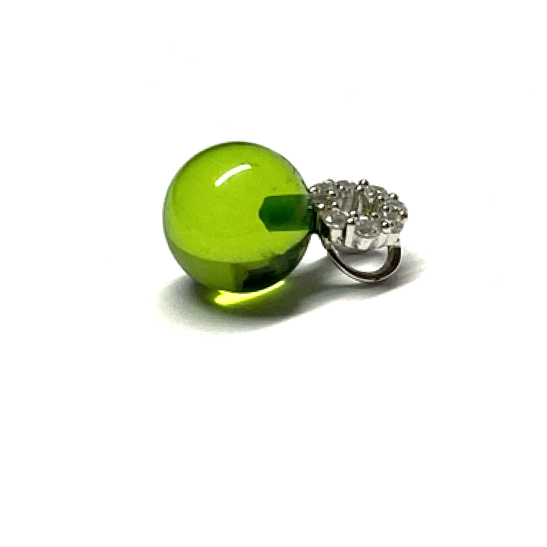 Silberanhänger 925/- rhodiniert karibischer Bernstein grün Kugel 8mm + Zirkonia Kettengleiter