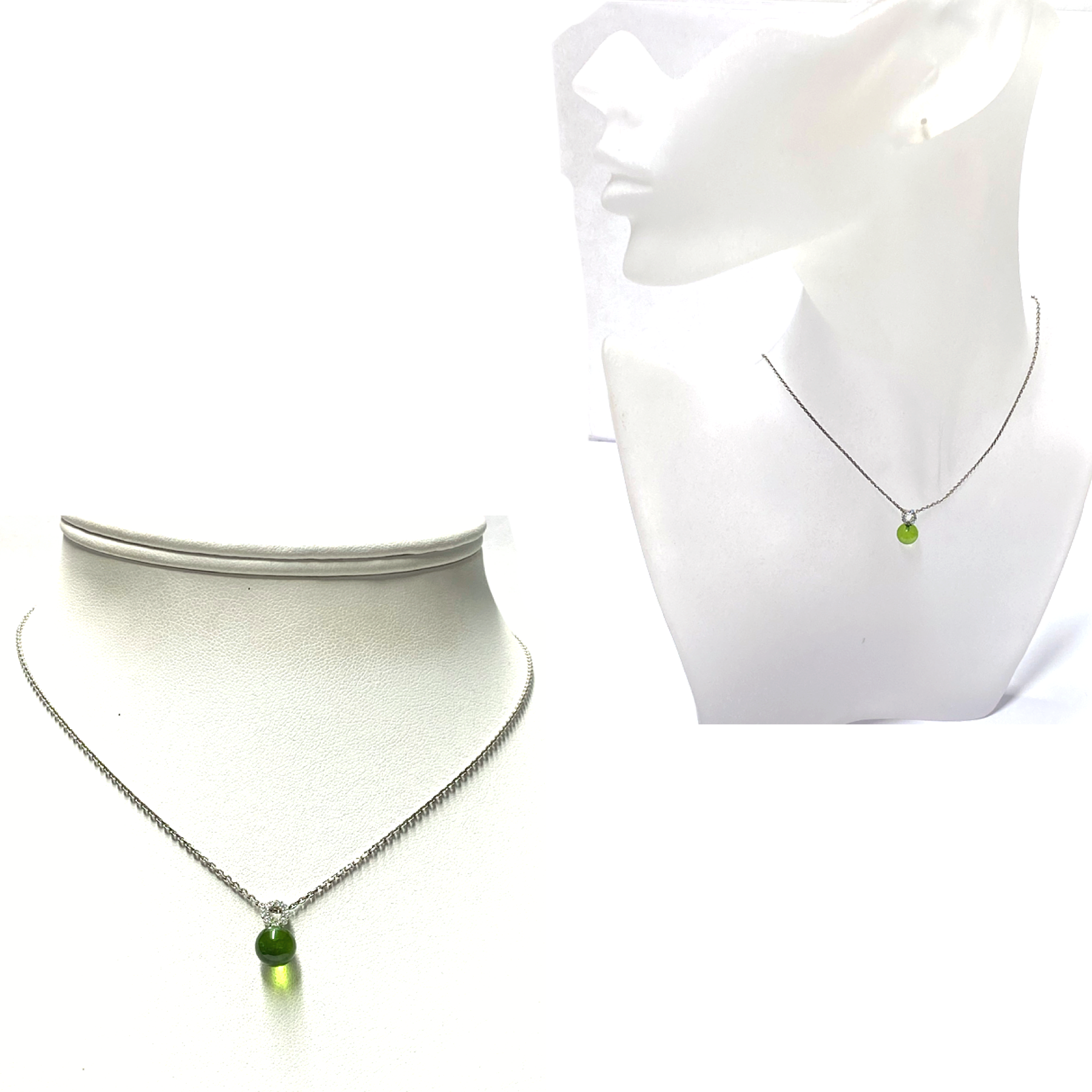 Dieser edle Kettenanhänger ist aus 925/- sterling Silber gefertigt und wurde abschließend, als Anlaufschutz, rhodiniert. Eine wunderbar grüne Kugel bildet den Hingucker. Die Kugel ist aus dem noch eher unbekannten karibischem Bernstein. Begleitet wird der grüne Edelstein von einem funkelnden Zirkonia oberhalb der Kugel. Über die fest integrierte Anhängerschlaufe können Sie eine Kette Ihrer Wahl einfädeln. Die hier abgebildete Kette ist nicht im Lieferumfang enthalten.