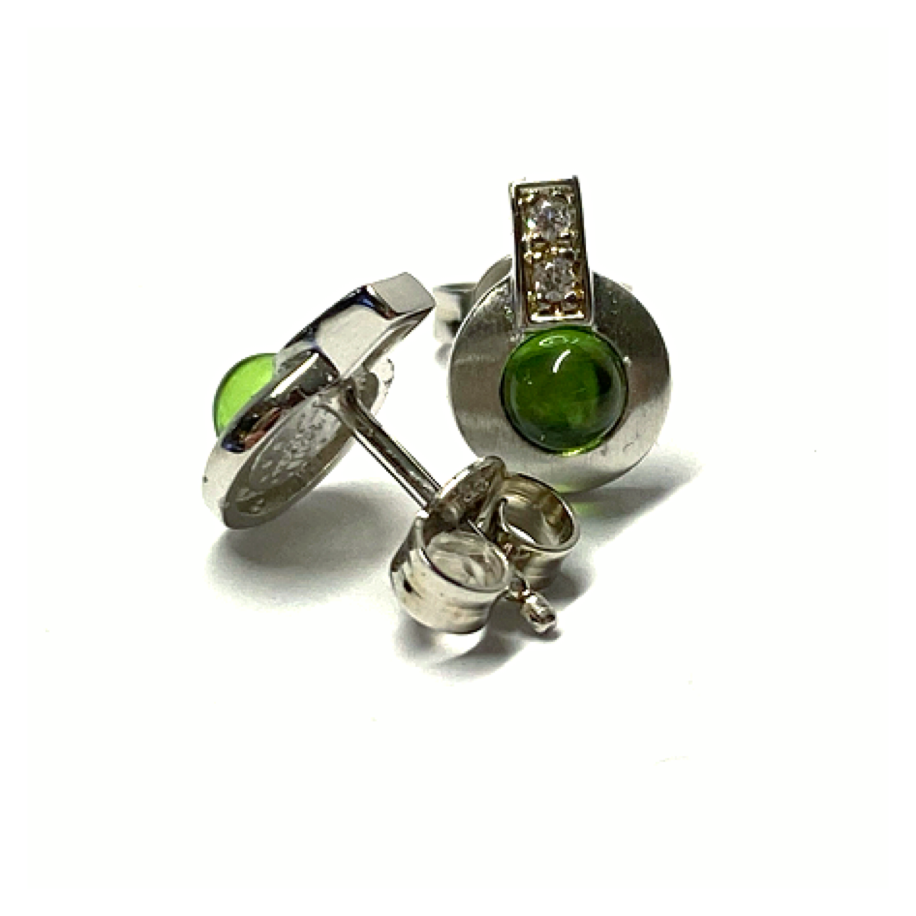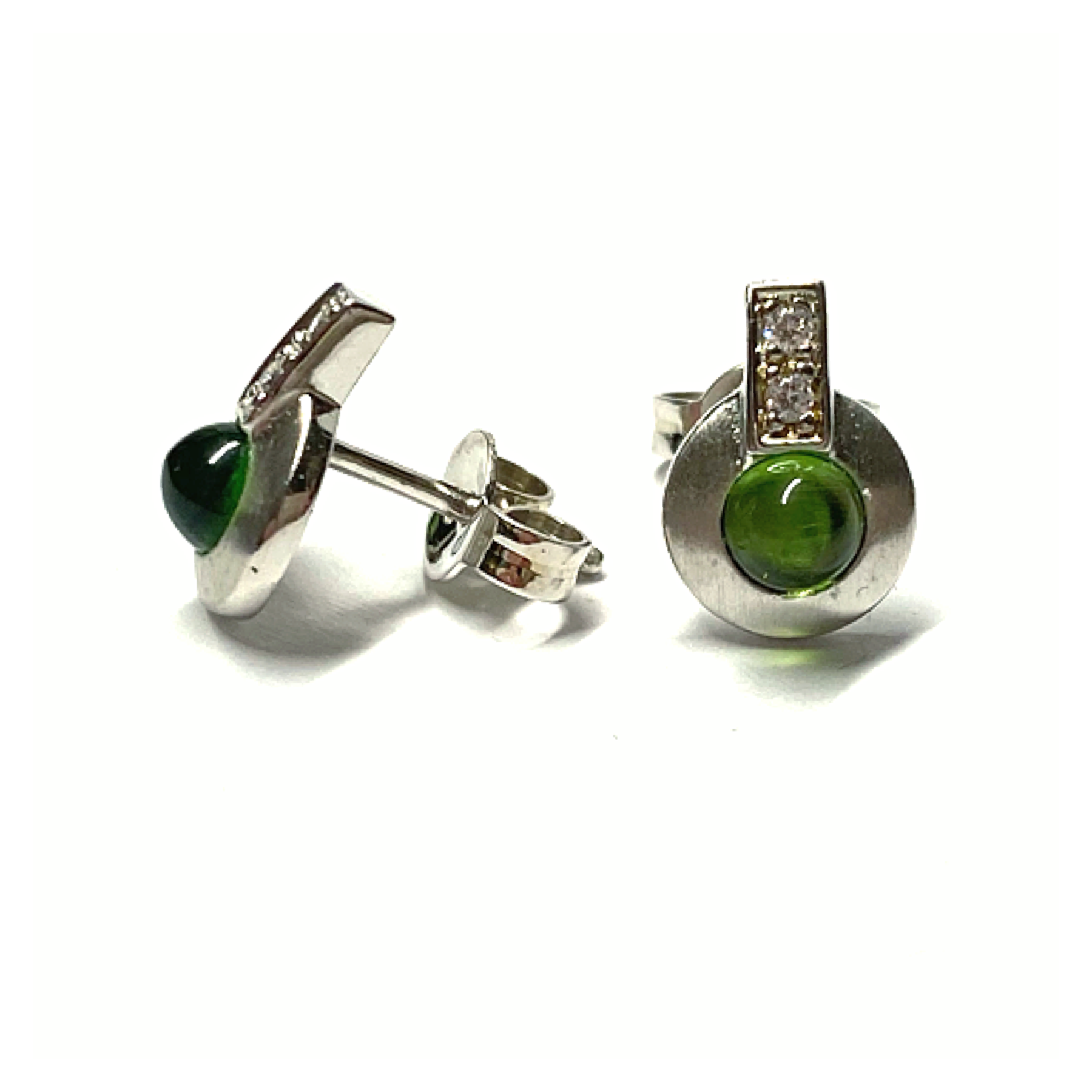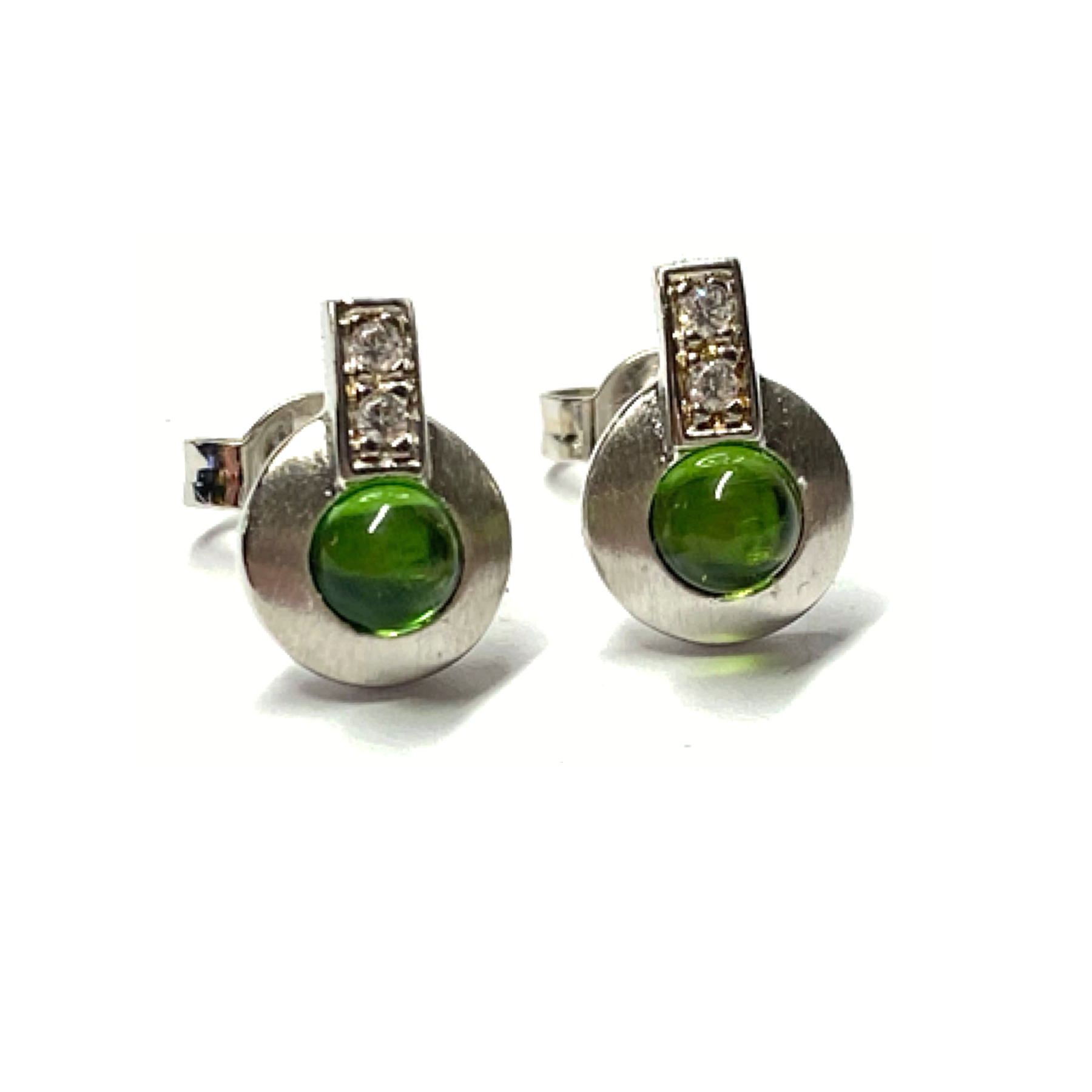 Diese edlen Ohrringe sind aus 925/- Sterling Silber gefertigt und wurden abschließend, als Anlaufschutz, rhodiniert. Auf einer dezent mattierten Fläche ist eine herrlich grüne Kugel aufgesetzt. Dank der tollen Farbe hebt sie sich hervorragend vom Silber ab. Die Kugel ist aus dem noch eher unbekannten karibischem Bernstein. Begleitet wird der Bernstein von feinen, funkelnden Zirkonias, die dem Ohrschmuck einen edlen Look verleihen.