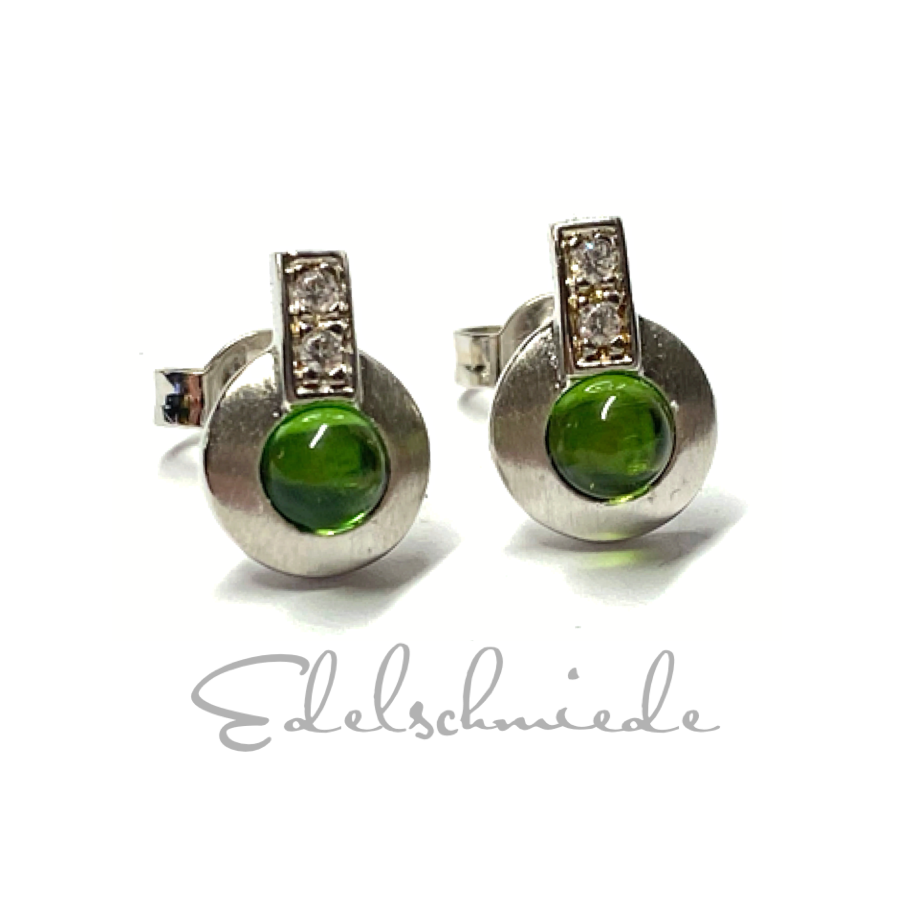 Silberohrstecker 925/- rhodiniert Bernstein grün karibsicher Bernstein Zirkonia tielweise matt Ohrring