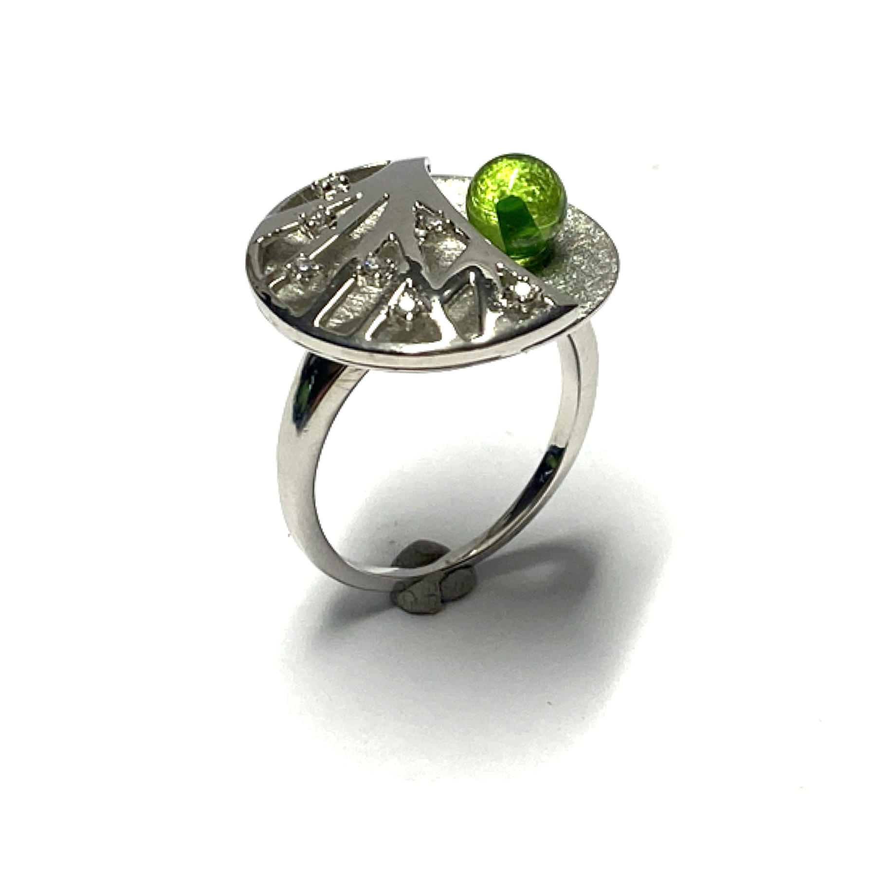 Dieser ausgefallene Fingerring ist aus 925/- Sterling Silber gefertigt und wurde abschließend, als Anlaufschutz, rhodiniert. Er hat einen wunderschönen und grünen Bernstein integriert. Der Stein ist als Kugel geschliffen und sitzt mittig im Ringkopf. Der Bernstein bekommt seine typische Farbe dank des Fundortes - der Karibik.