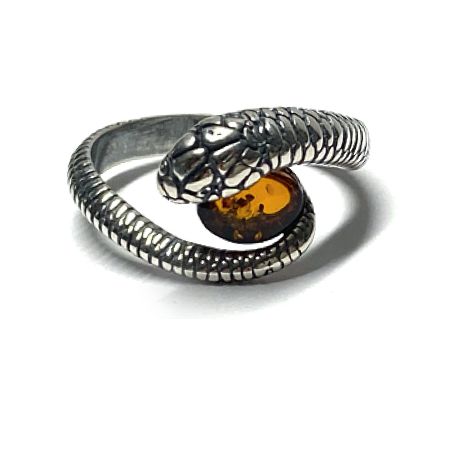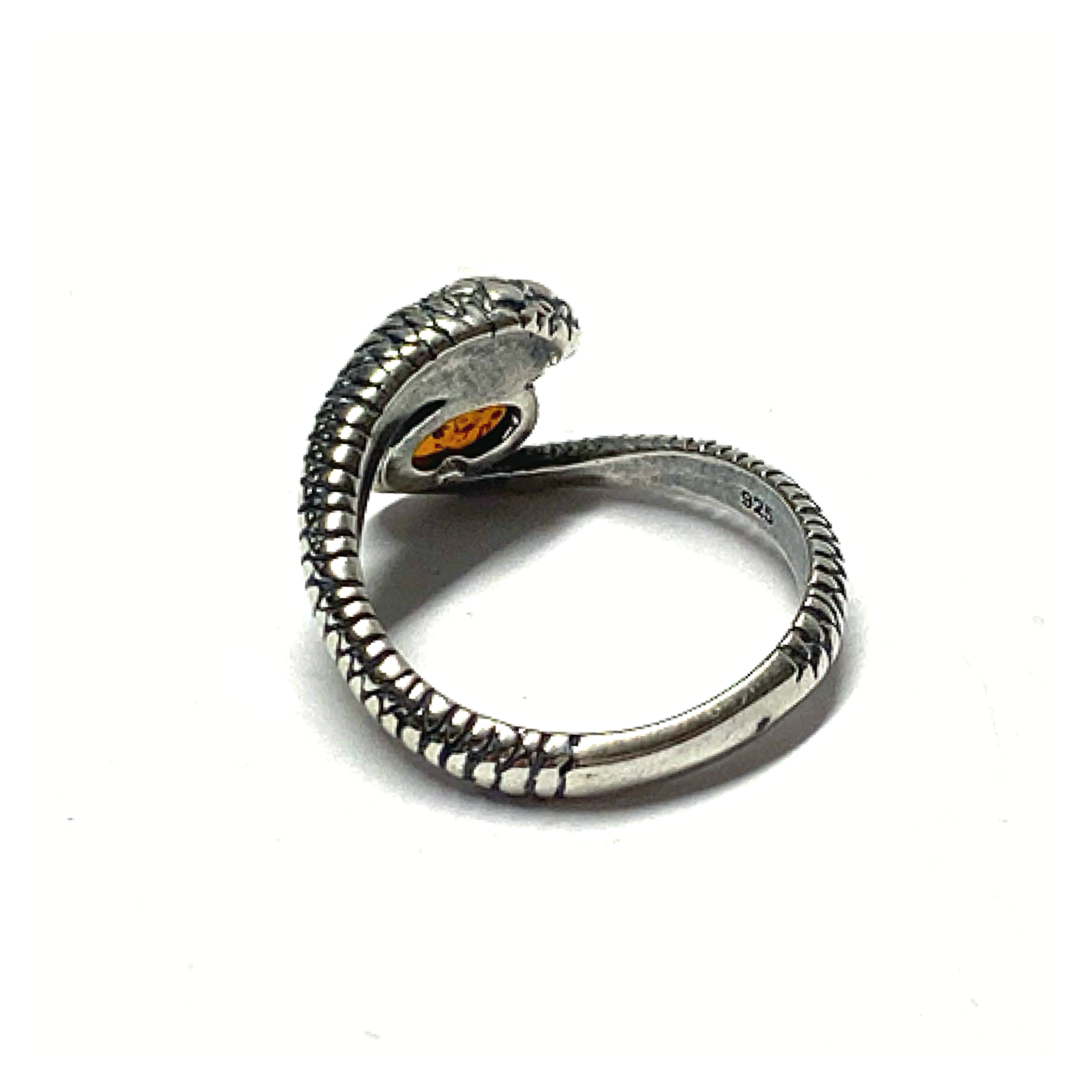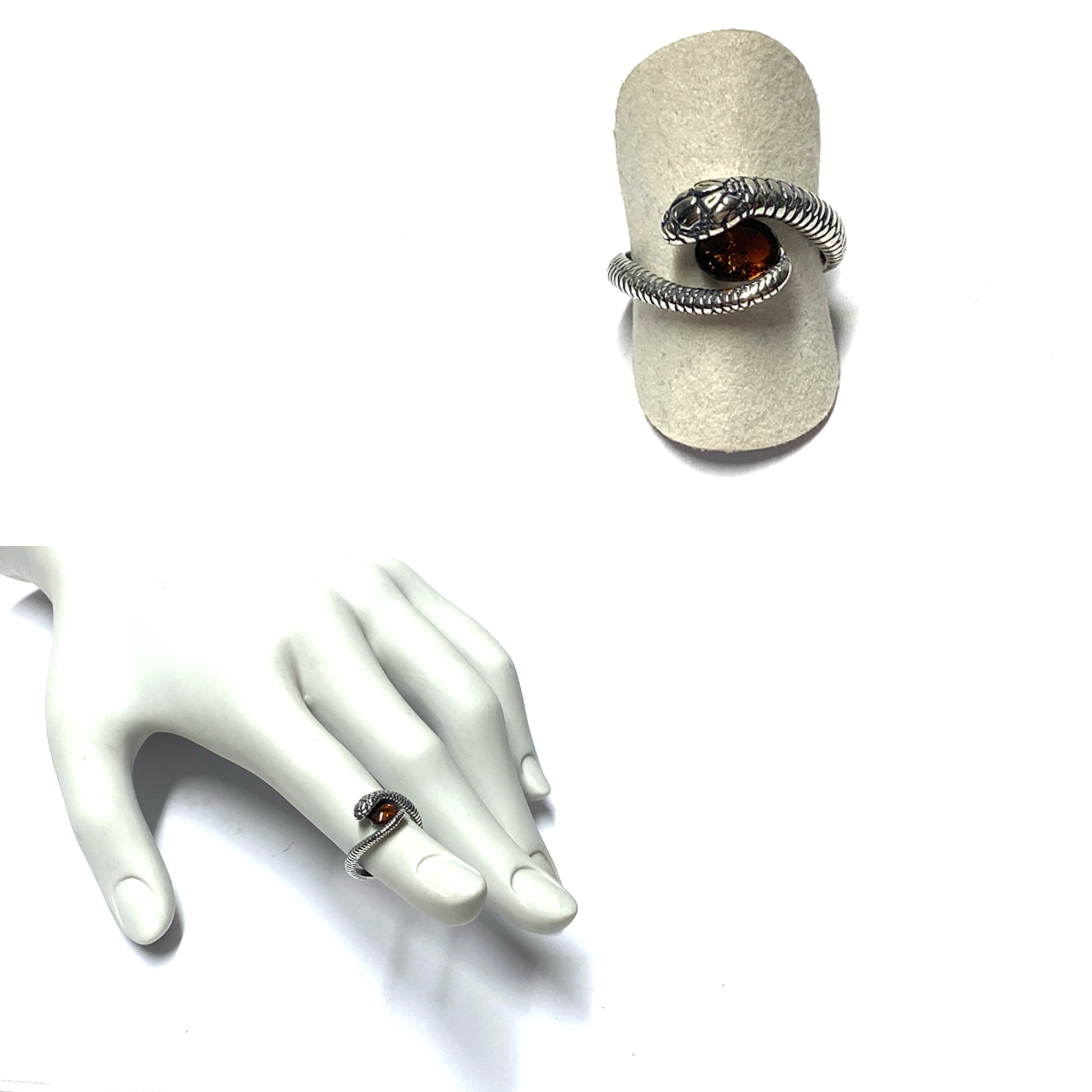 Silberring Bernstein 925 rhodiniert geschwärzt MusterungUnikat Schlange Schmuckring #54
