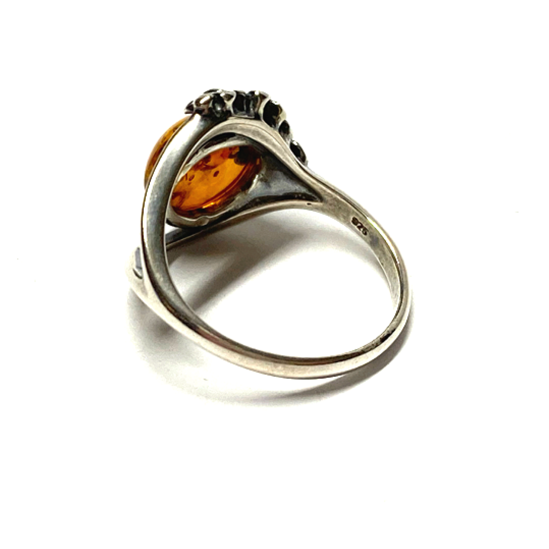 Silberring Bernstein 925 rhodiniert MusterungUnikat Blüten Schmuckring #58