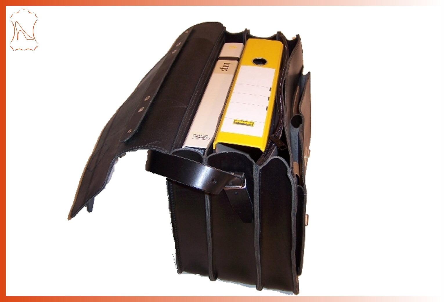 Es passen bequem 3 schmale Leitz-Ordner hinein, aber zur Not auch mal ein breiter Ordner.